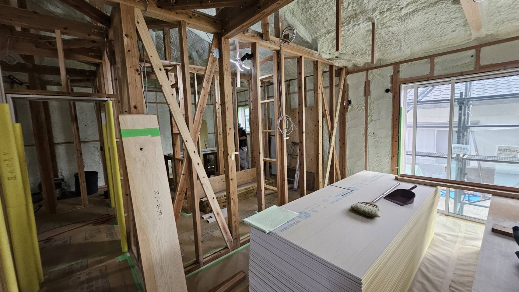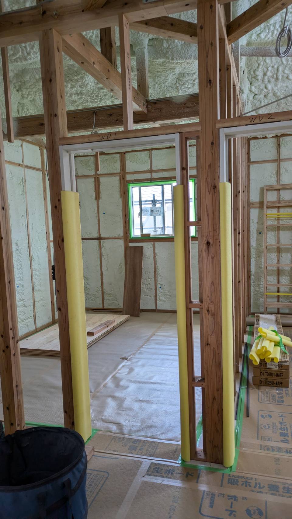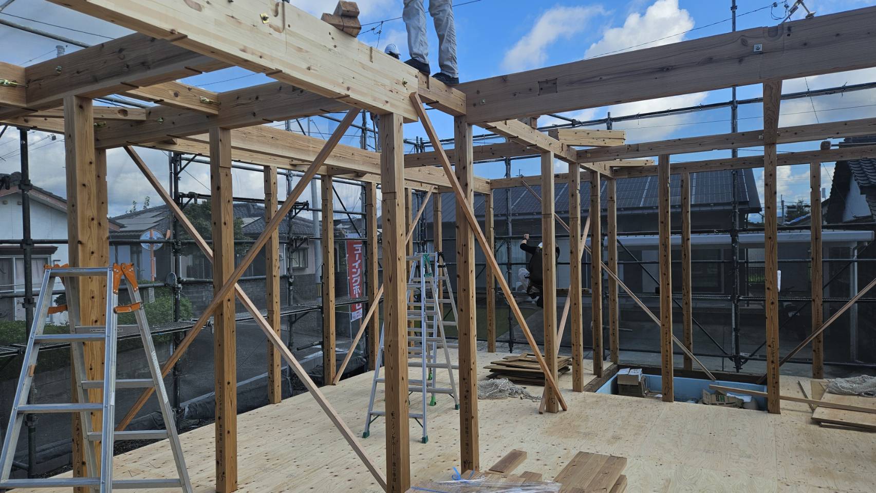 まさに盛夏。厳しい日差しの中、厳かに催されたW様邸地鎮祭。でも不思議と神主さんの祝詞と共に清々しい空気が場を包みだします。さっきまでの汗が噓のよう。ピリッと身も心も清めたら、この地に家を建て住まい、暮らしていくことを土地の神様にお伝えし、工事の安全と繁栄を祈願。さあ、本格的な家づくりがスタート。紙に書かれた夢が実際の形となっていきます。