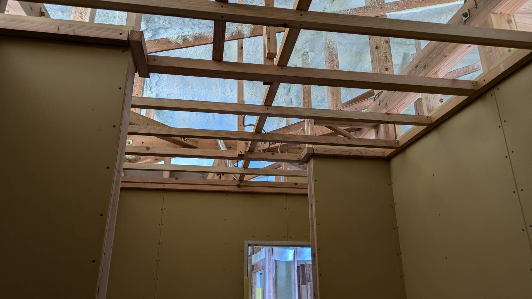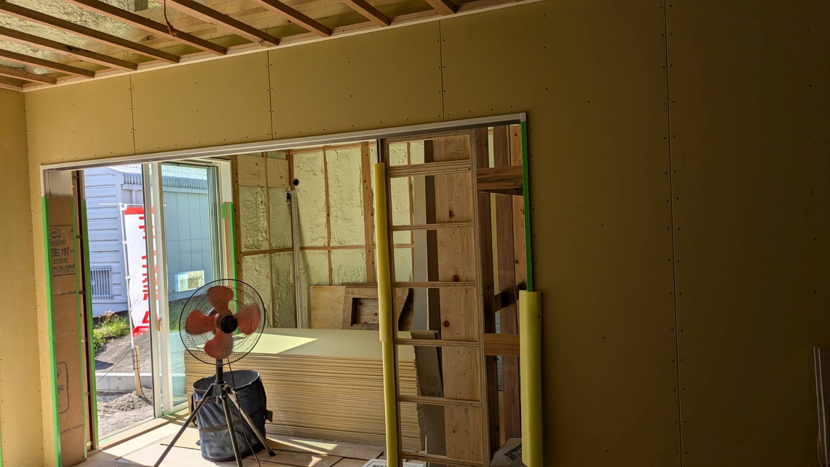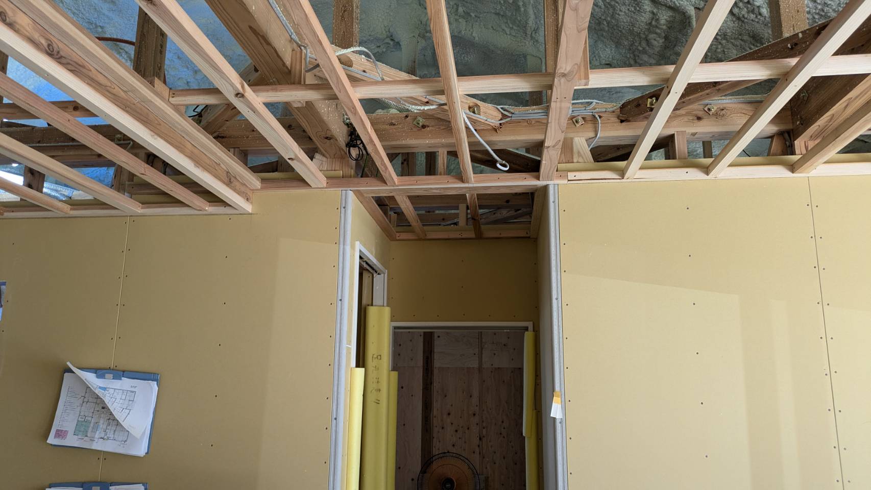 W様邸、石膏ボード貼りが完了いたしました。