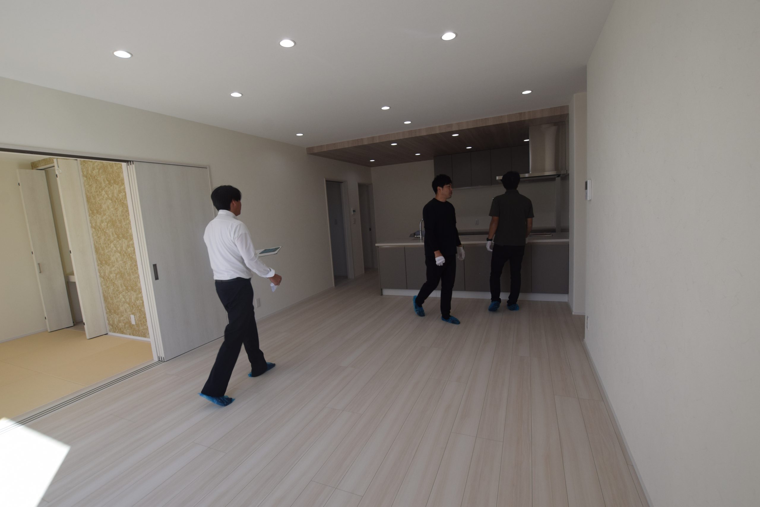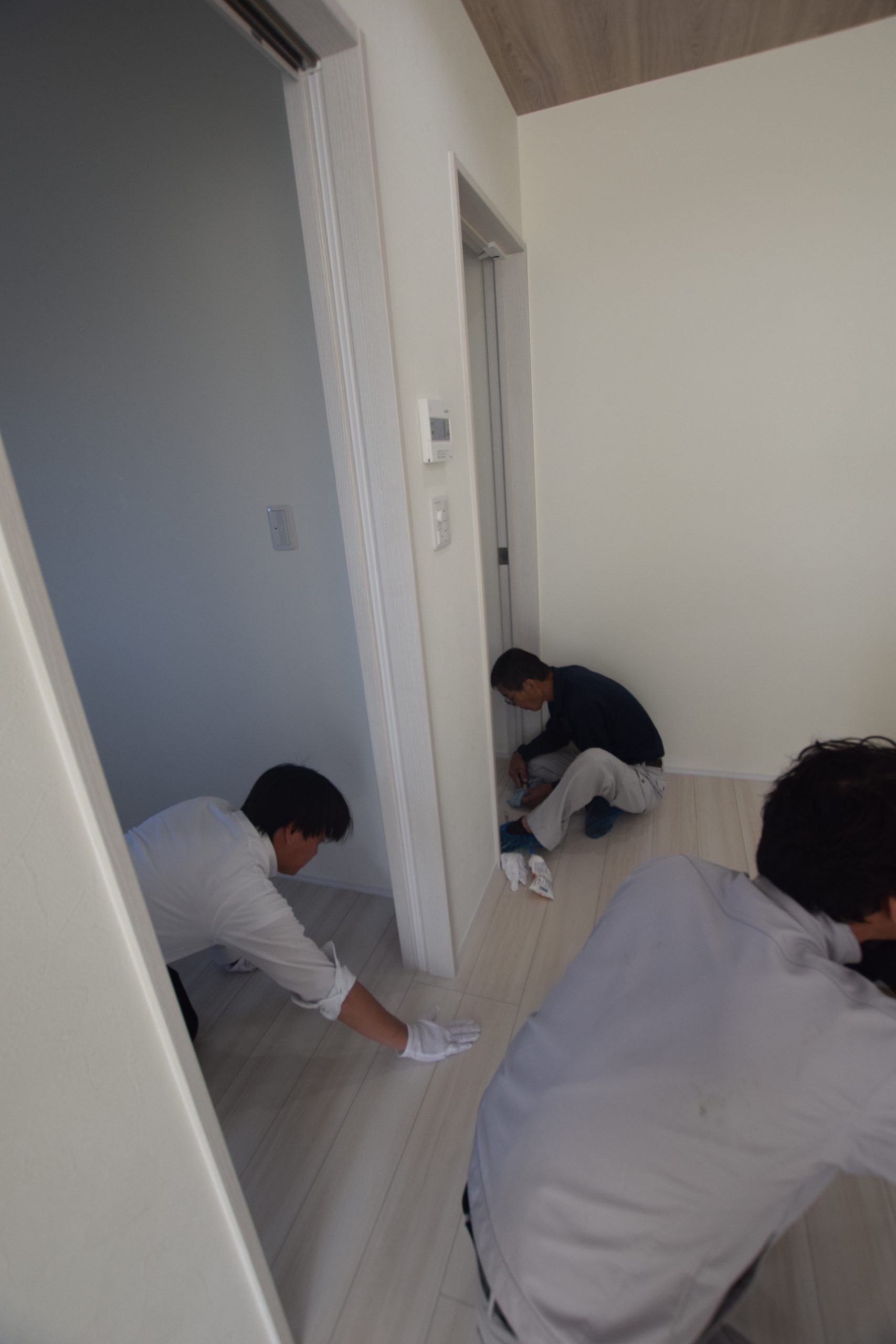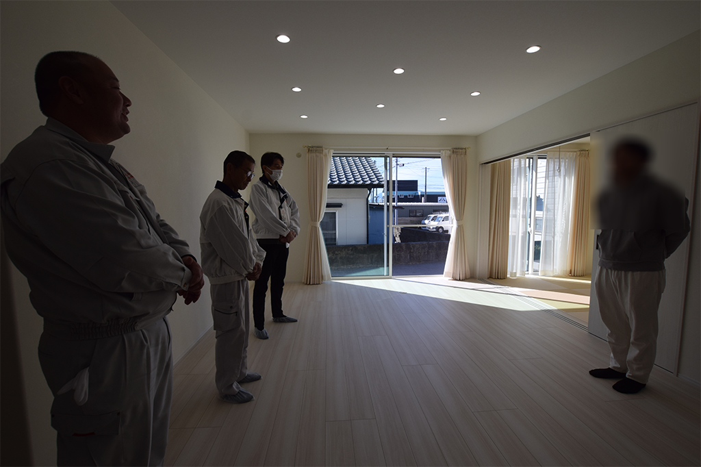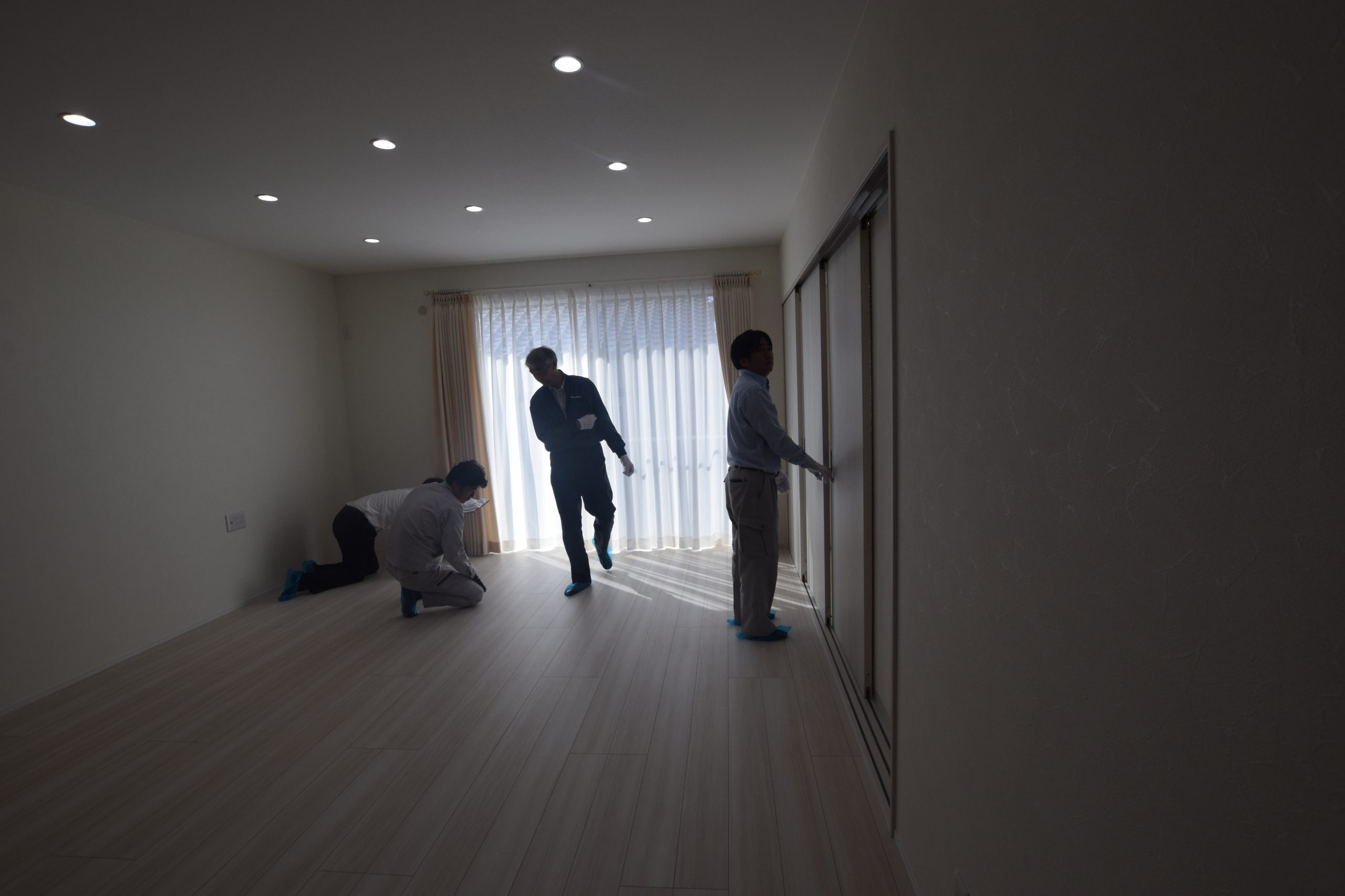 壁や床などの目視確認、建具や設備機器などの動作確認を