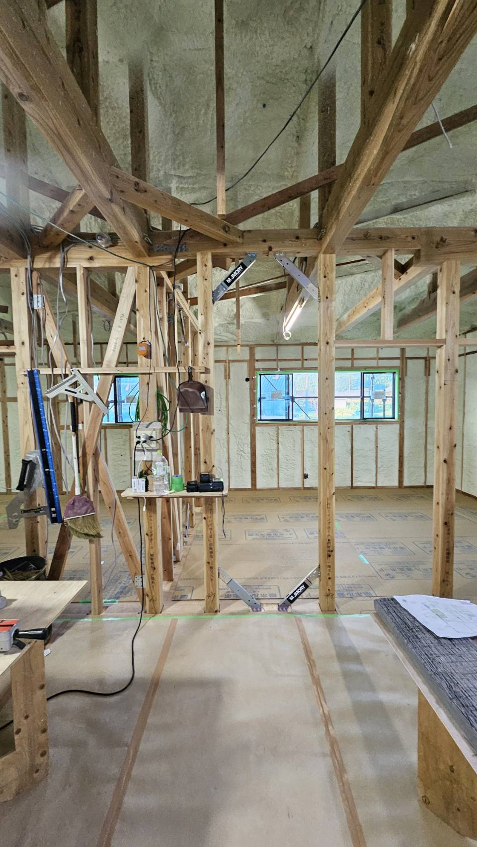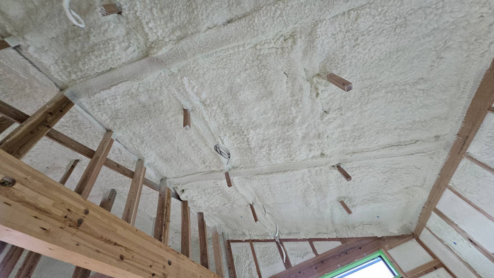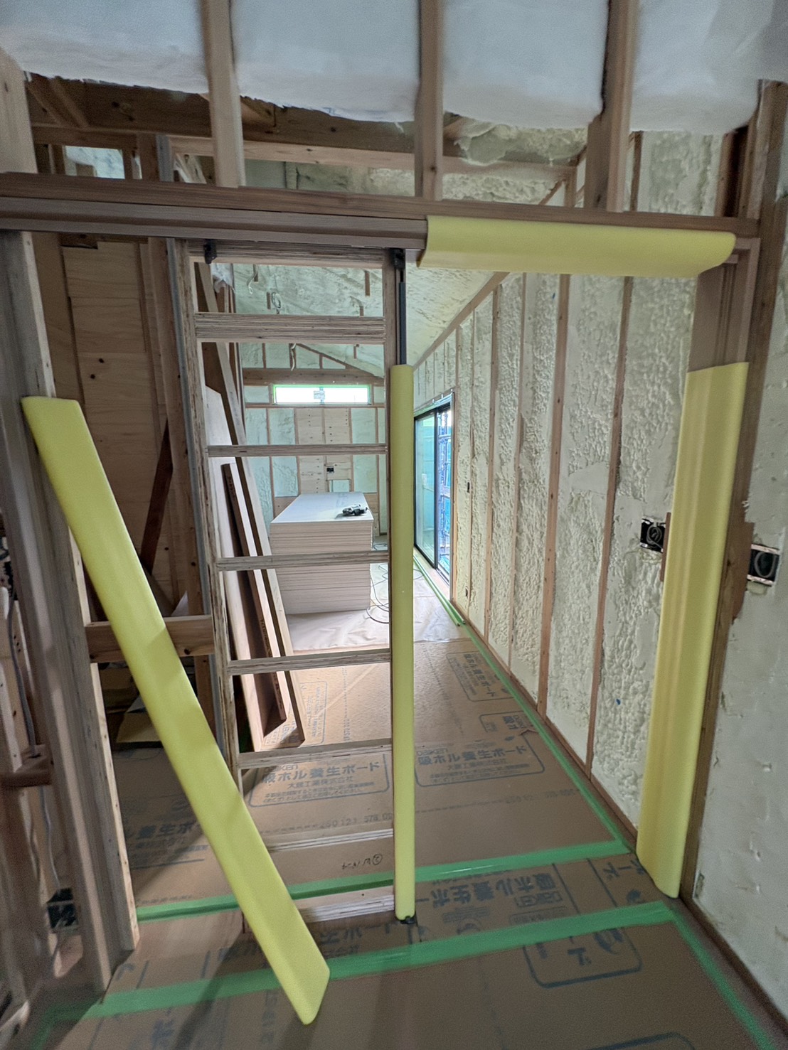 M様邸、吹き付け断熱の作業が完了いたしました。
