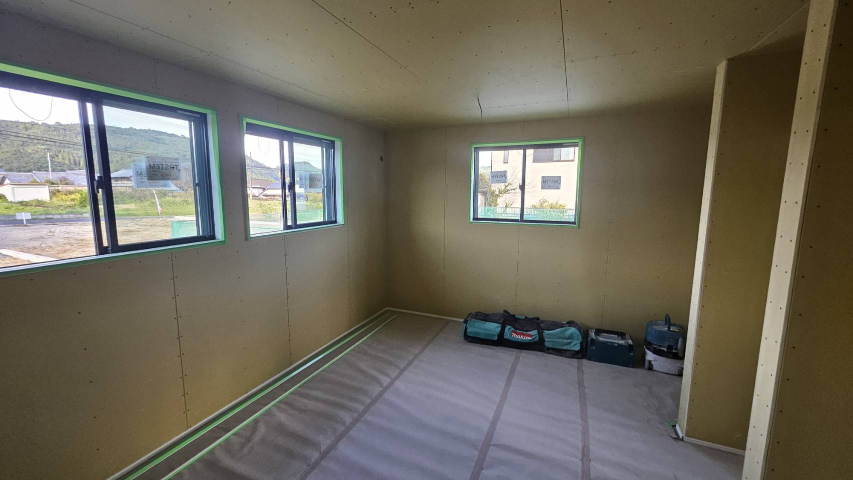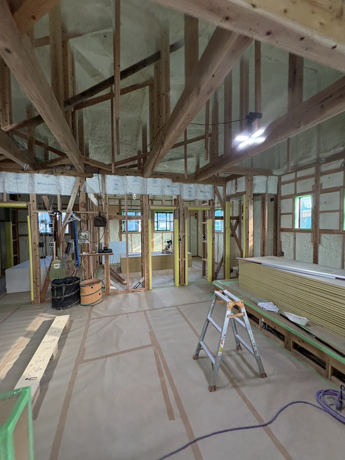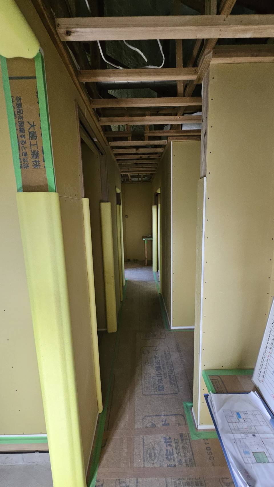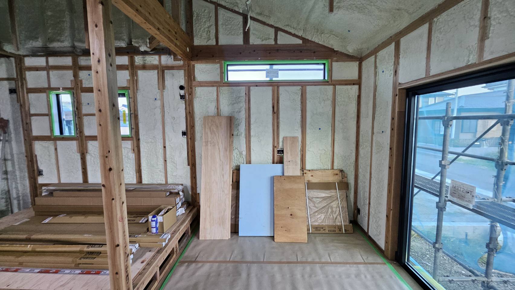 M様邸、吹き付け断熱の作業が完了いたしました。