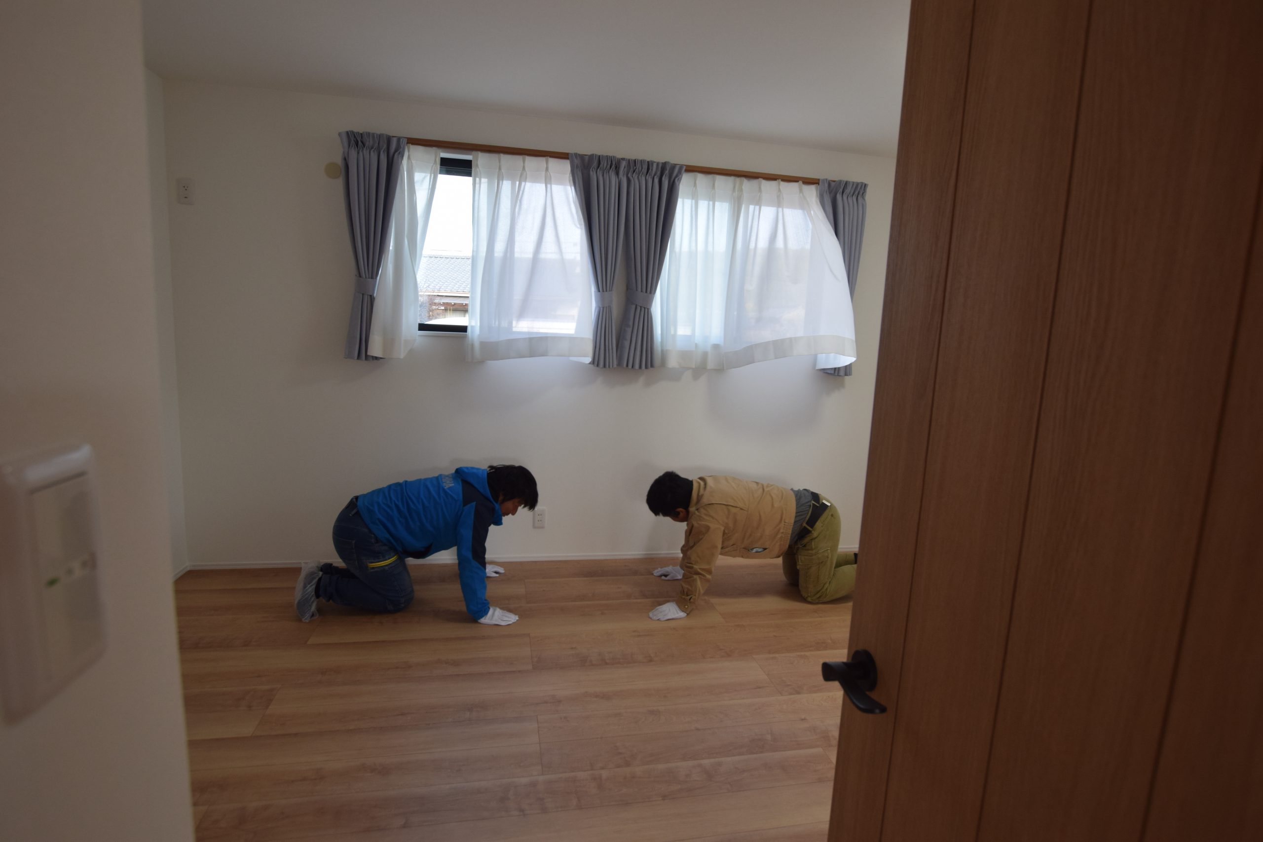 M様邸、フローリング施工完了後しっかりと養生し
