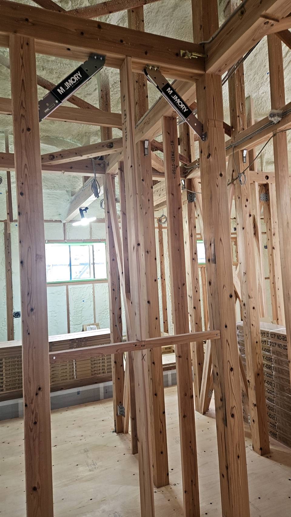 筋交いの角度や位置が図面通りになってなっているかを確認しながら