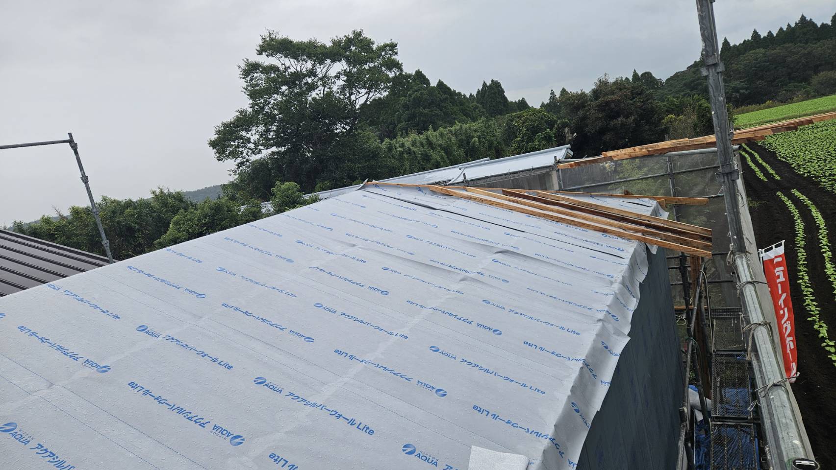 Y様邸、屋根下地(ルーフィング施工)作業が完了しました。