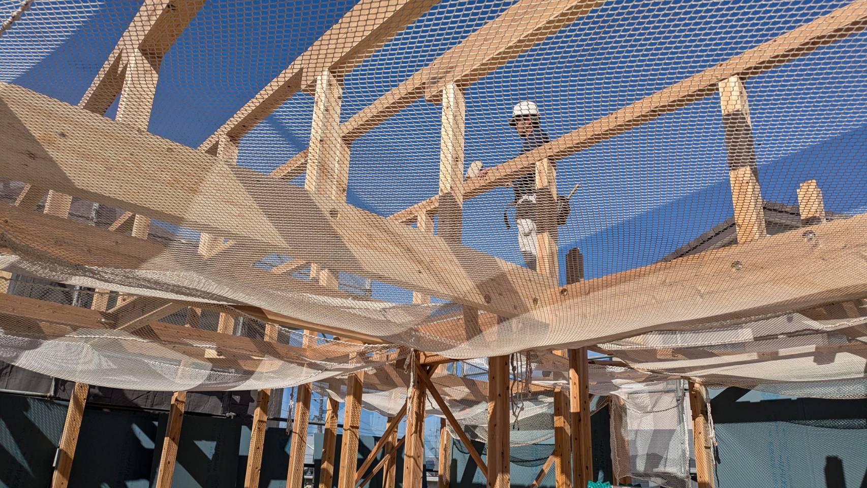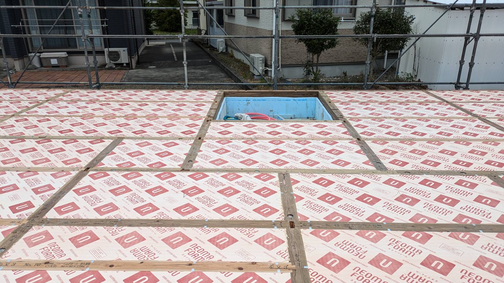 M様邸、床を組み終え、建てかたも完了です。