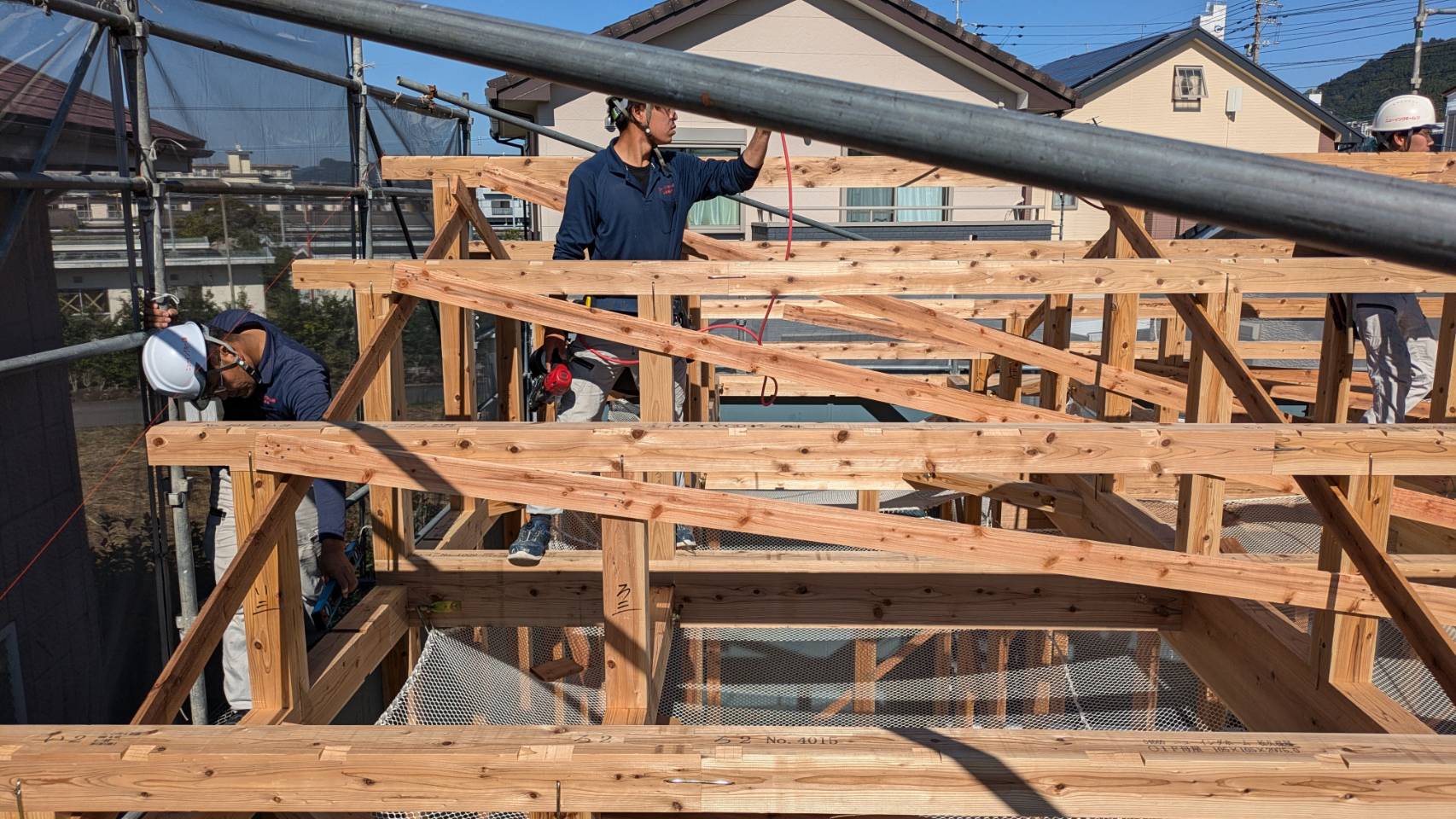 作業の際は、釘やビスのピッチが規定通りに打たれているかなどチェックが重ねられます。