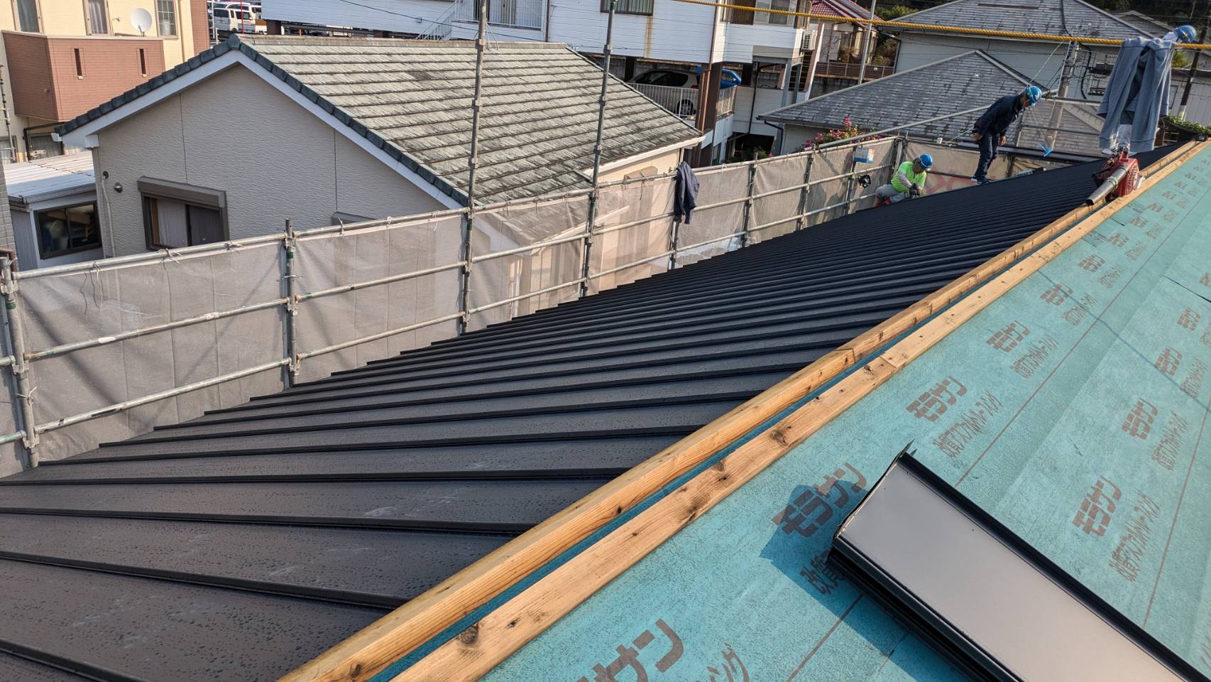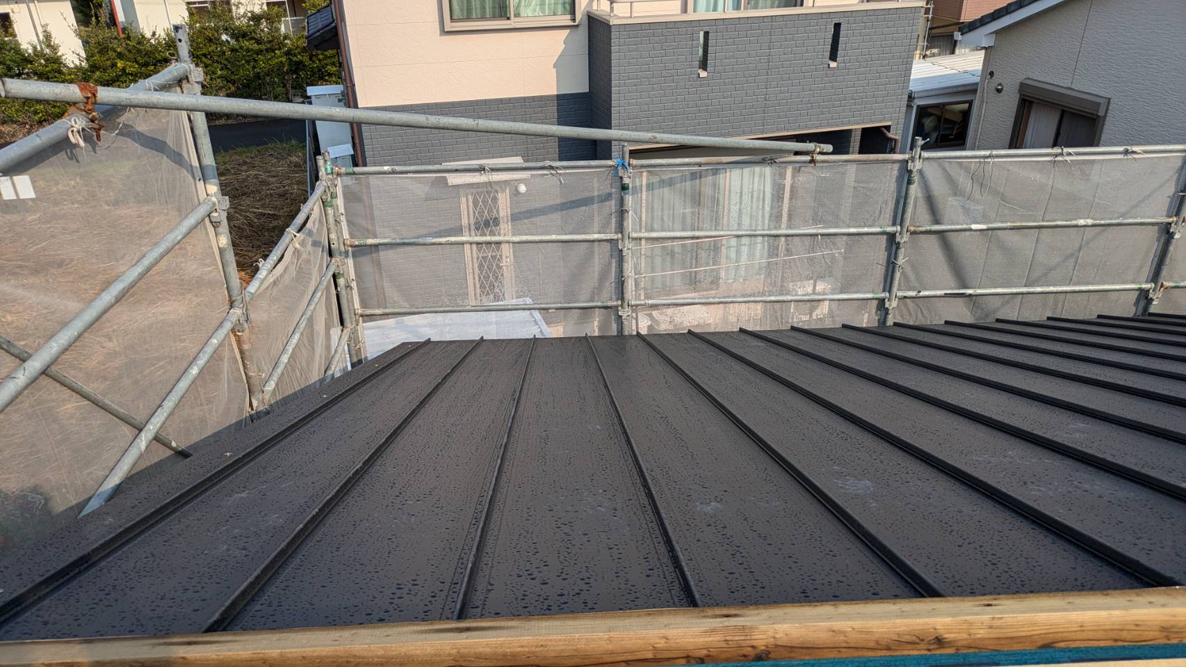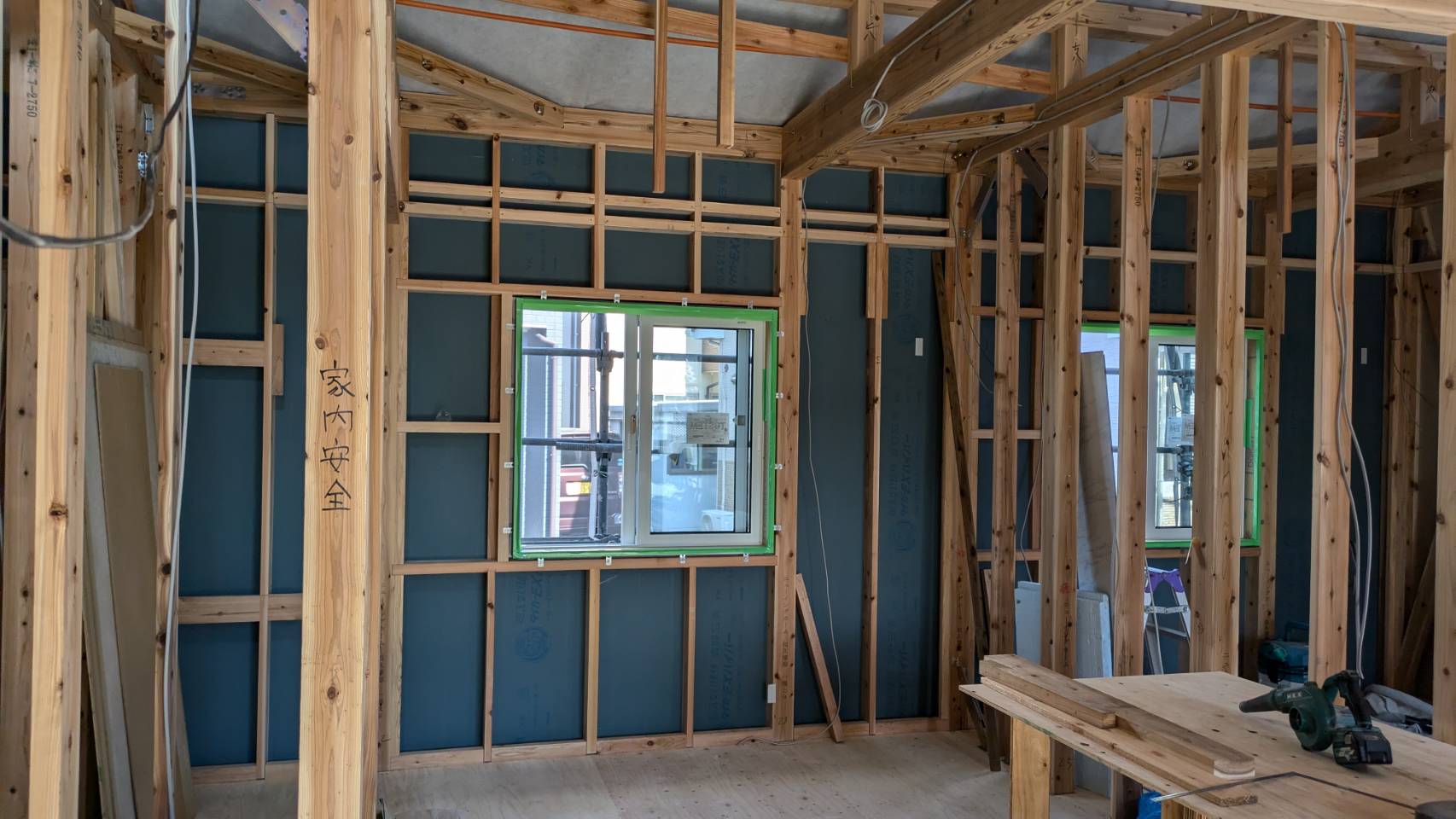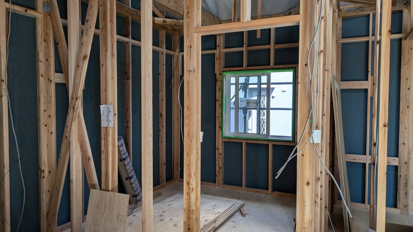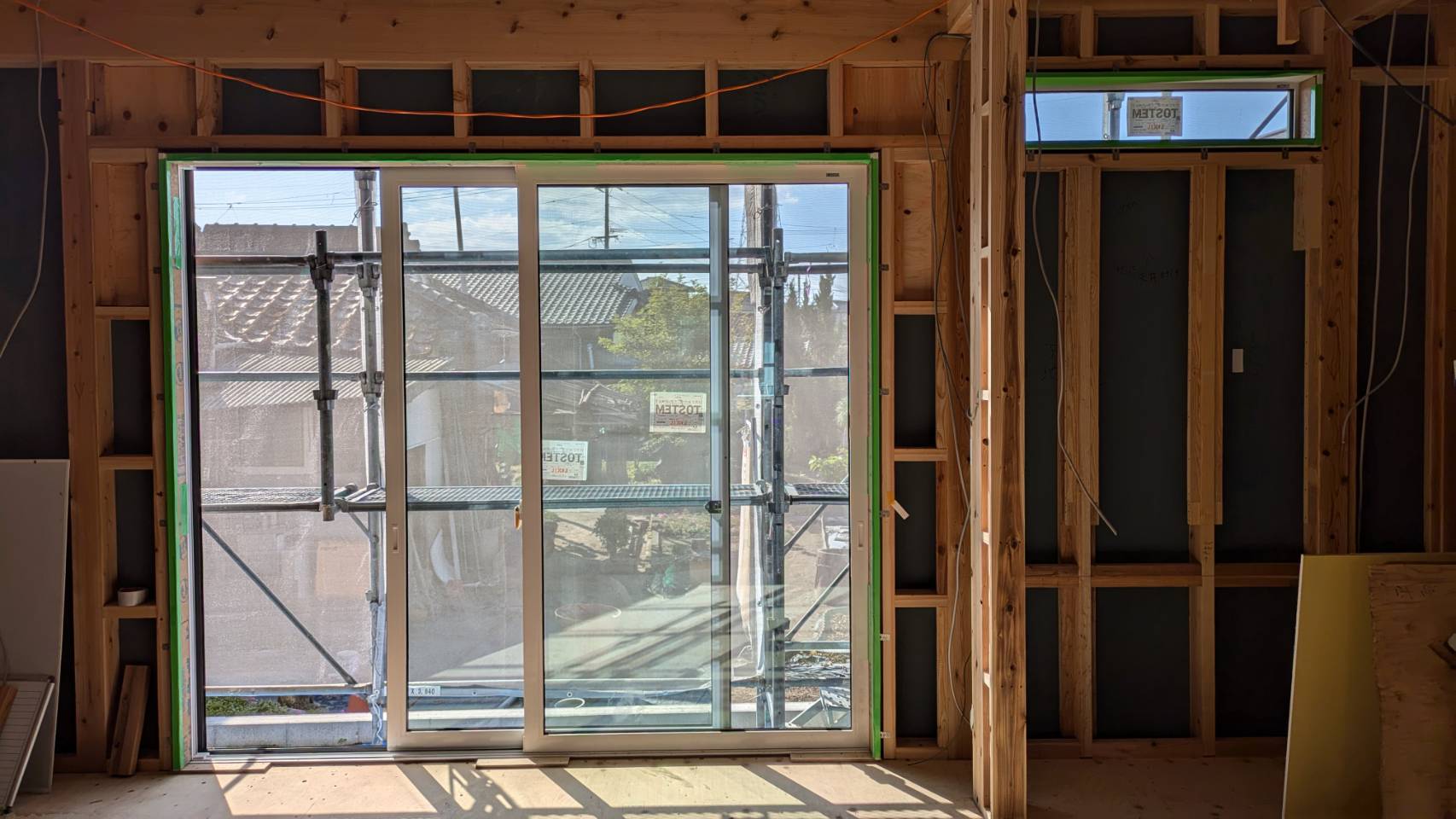 サッシの取り付け、屋根材の設置も完了しております。