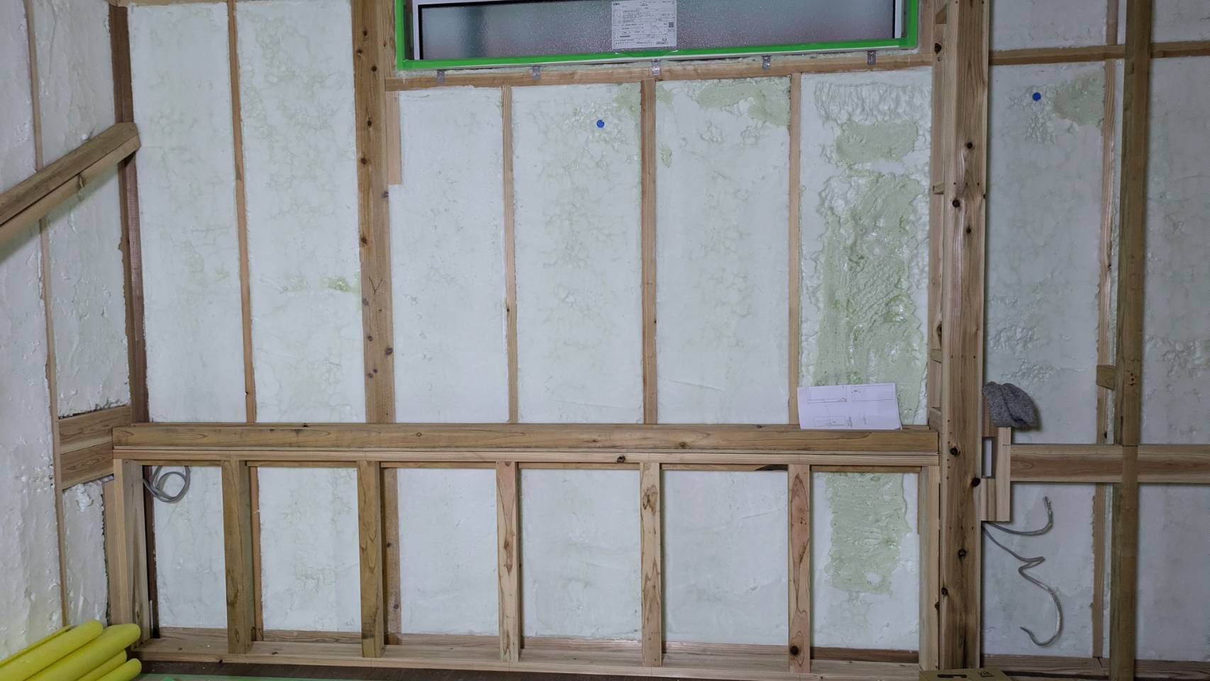 M様邸、吹き付け断熱作業が完了しました。