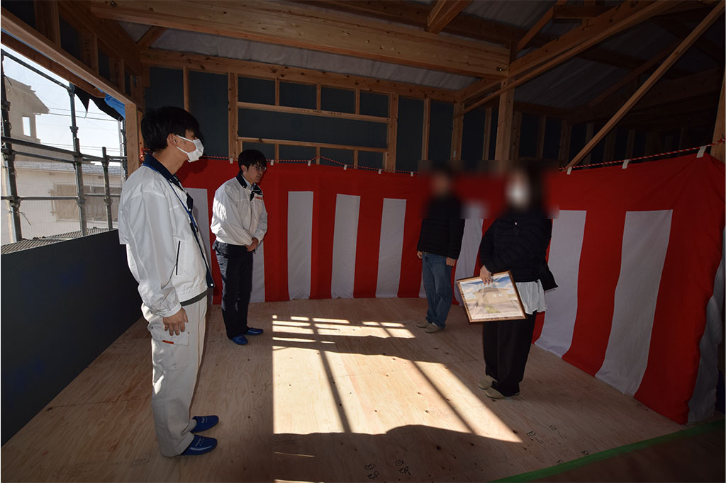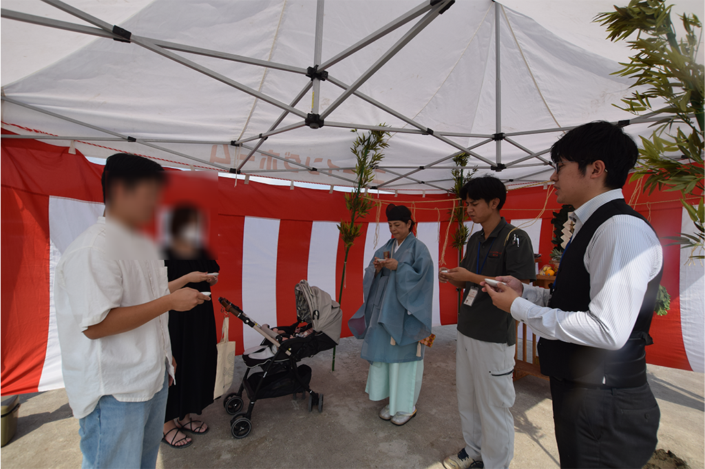 土地の神様にご祈祷し、これから住まうためのご挨拶、そして工事中の安全を願います。