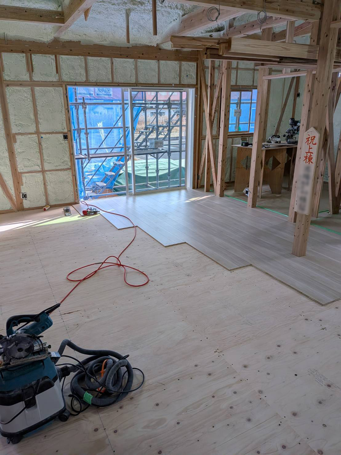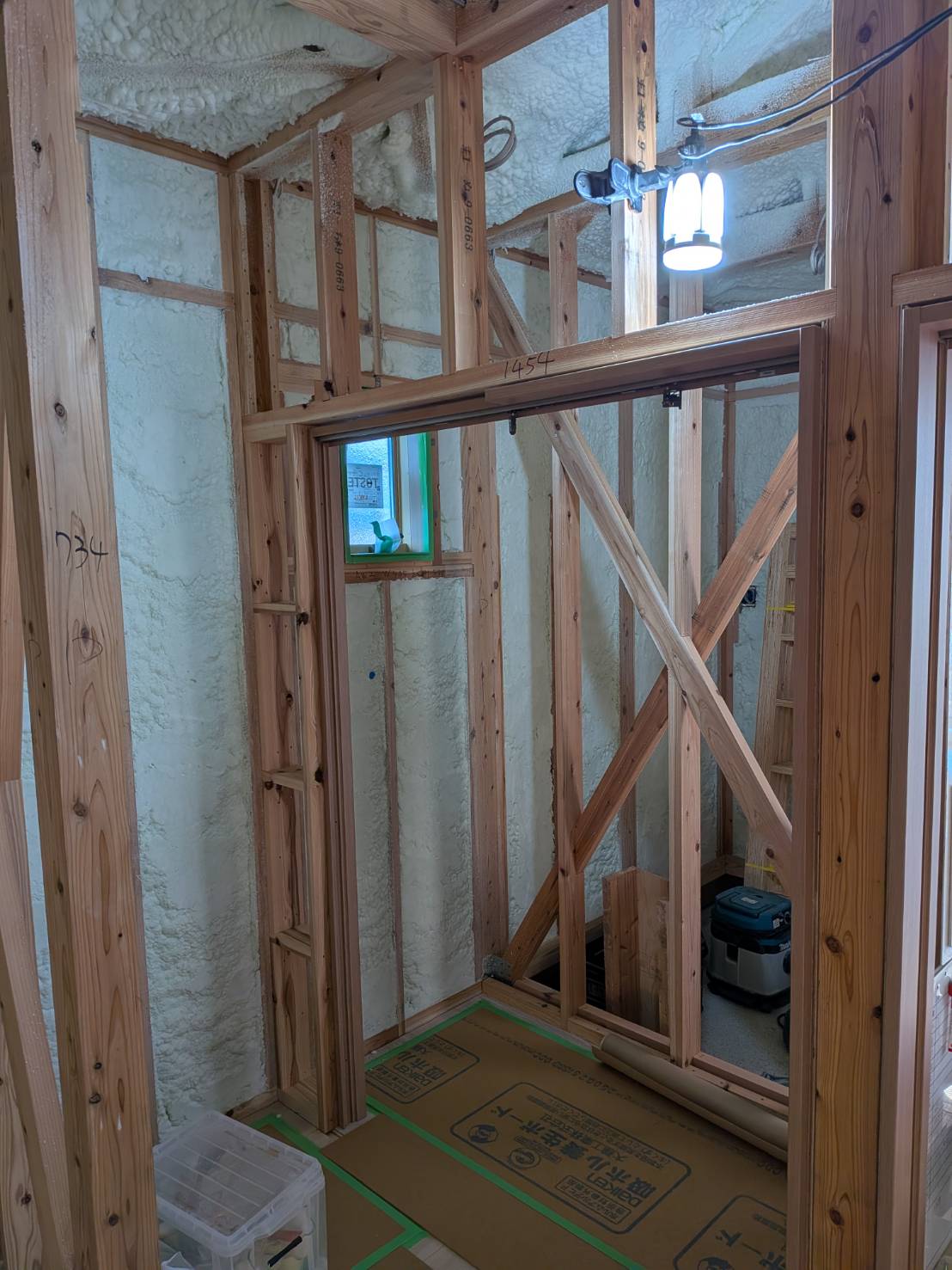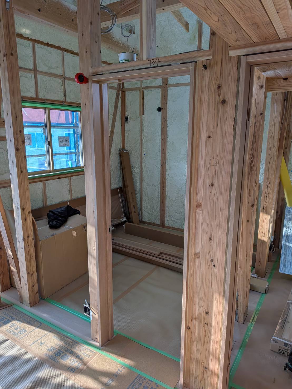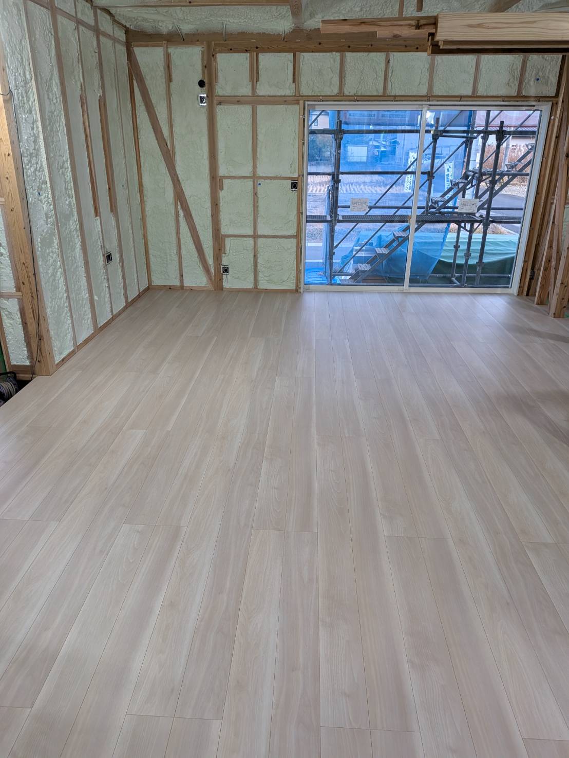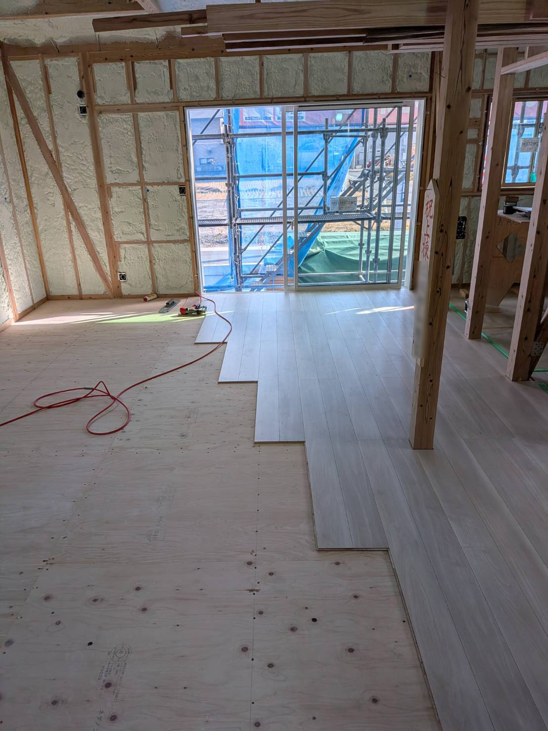 I様邸、フローリング施工完了後は開口部の作業に入っております。