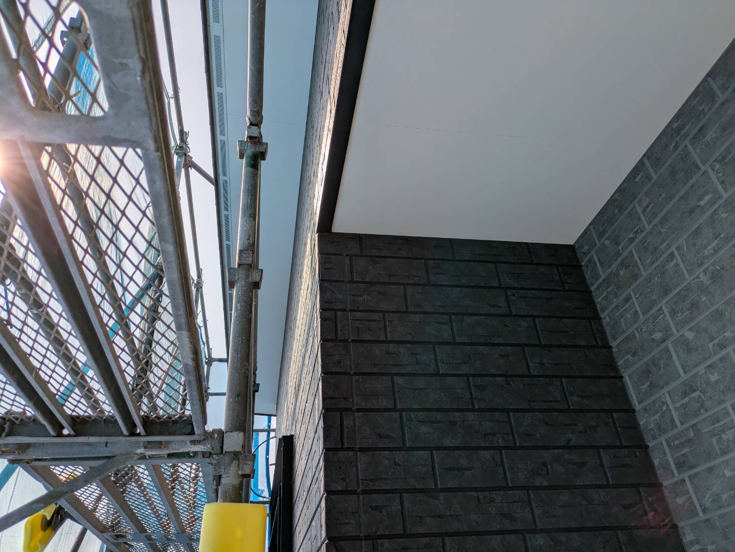T様邸、足場の設置や軒天作業などが進んでおります。