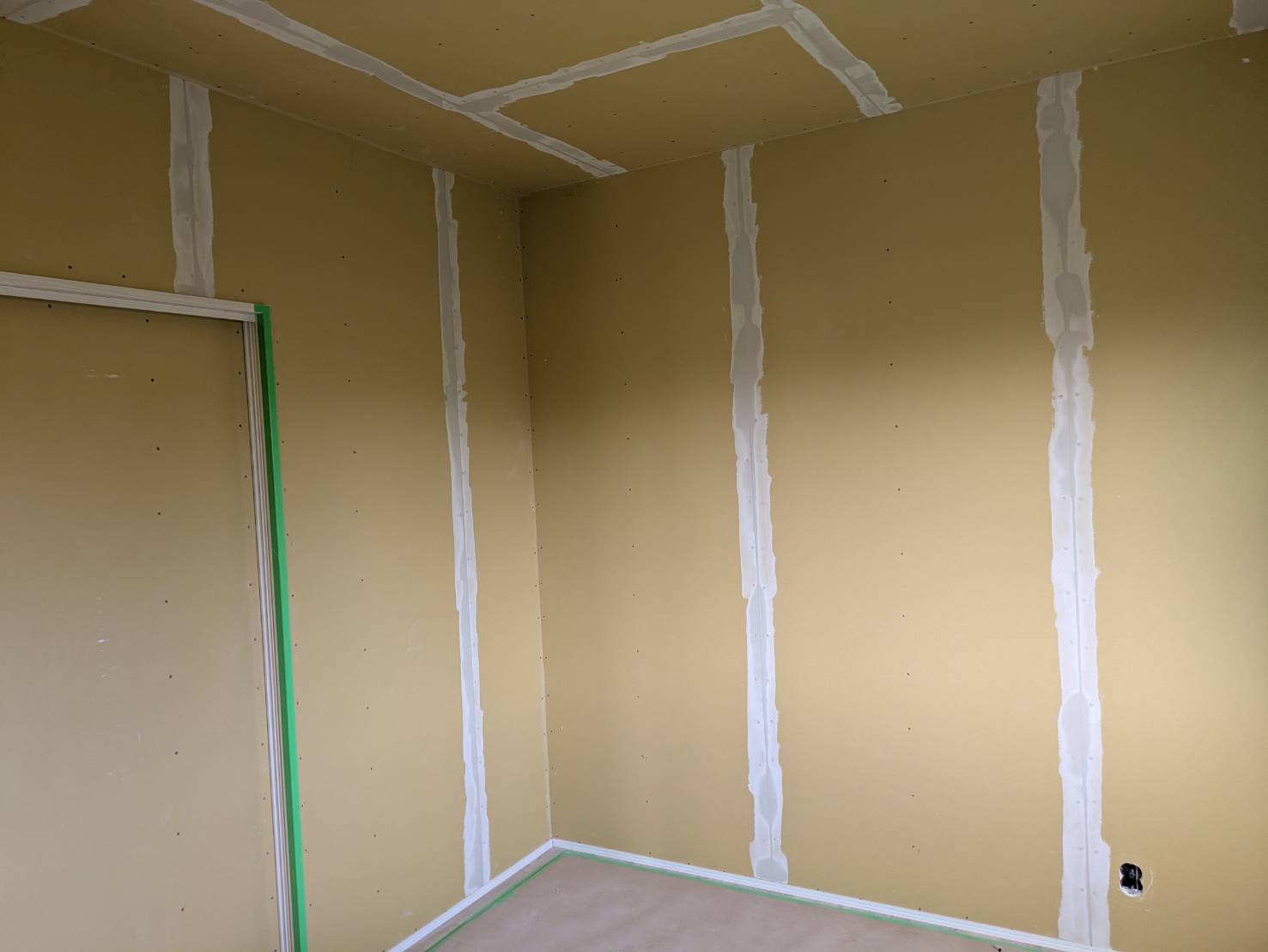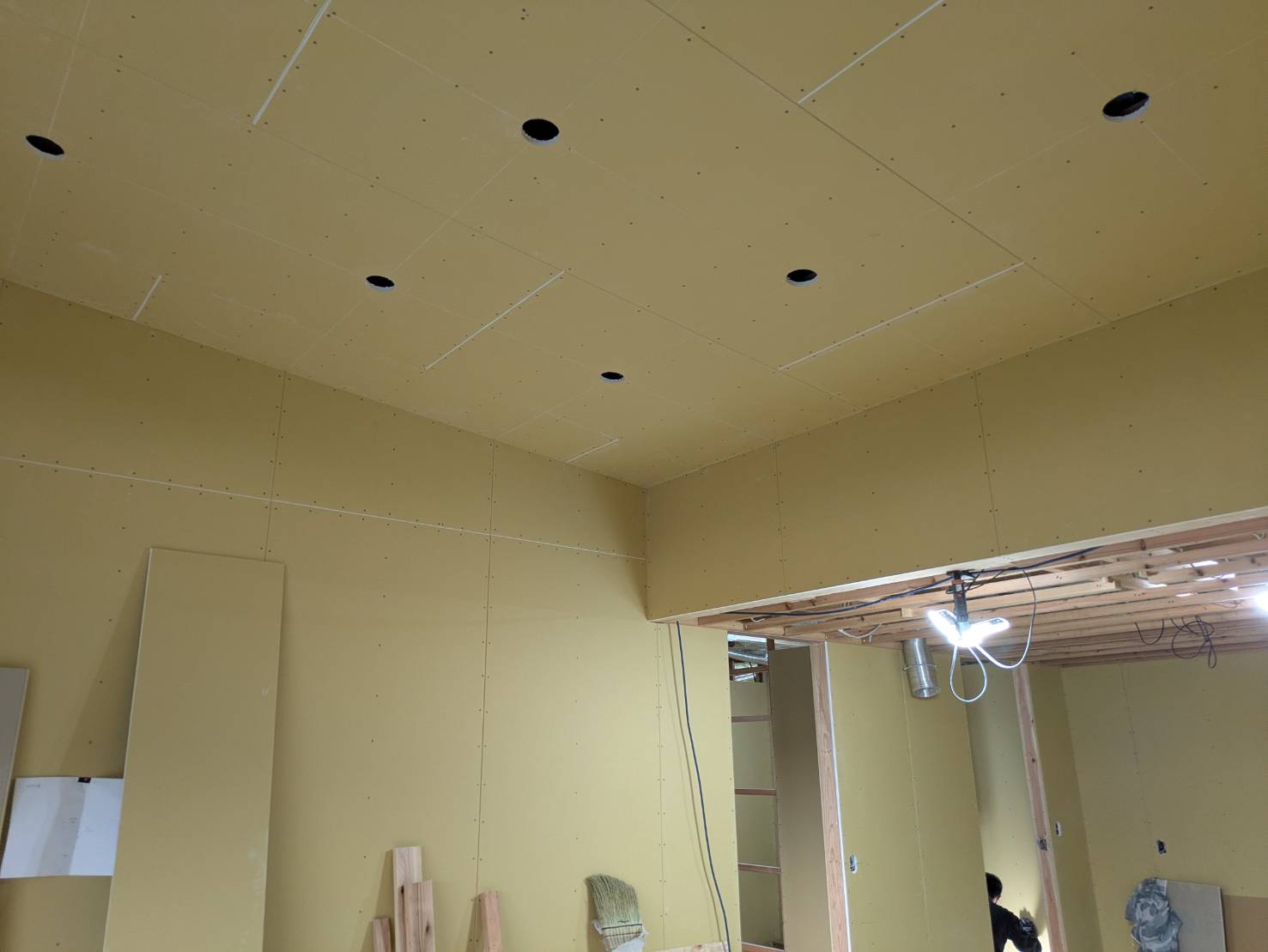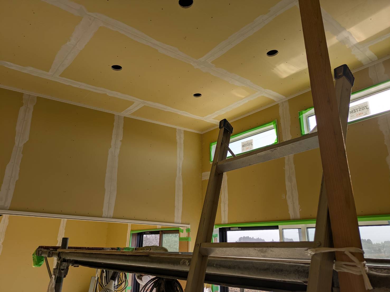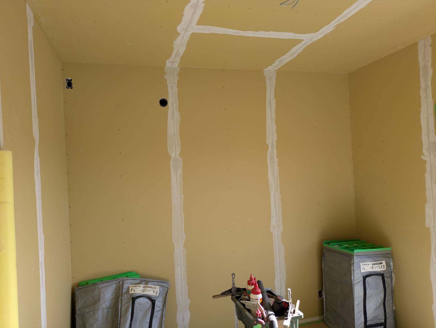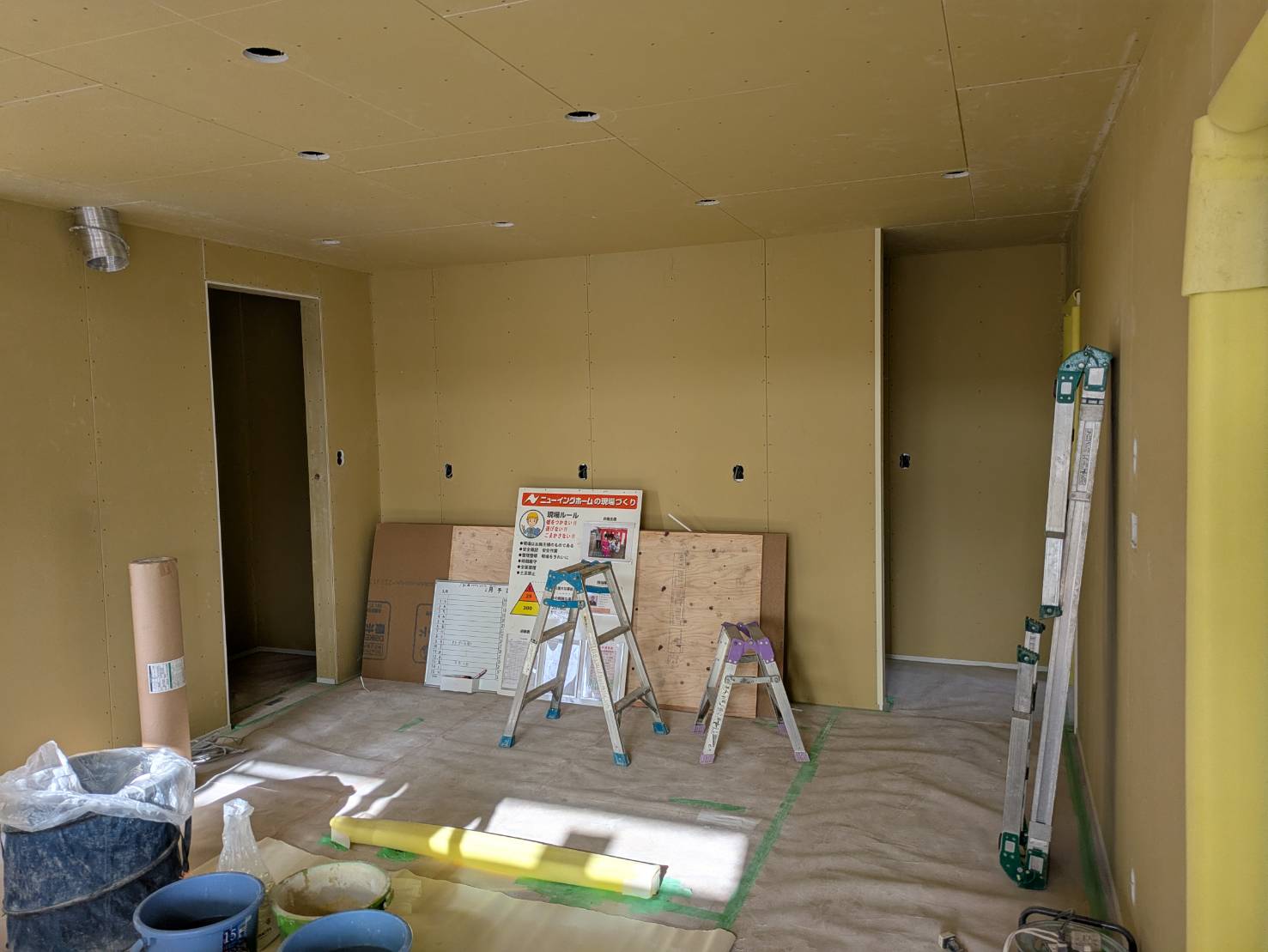 T様邸、全ての石膏ボード張りが完了しております。