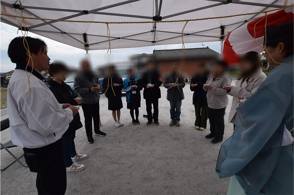 T様邸、地鎮祭が執り行われました。 地鎮祭の流れは、事前に宮司の方からしっかりと説明いたします。 ご親族お揃いでのご祈祷となり、現場の安全をお守りいただきます。 T様ご夫妻、ご親族の皆様、ありがとうございました。