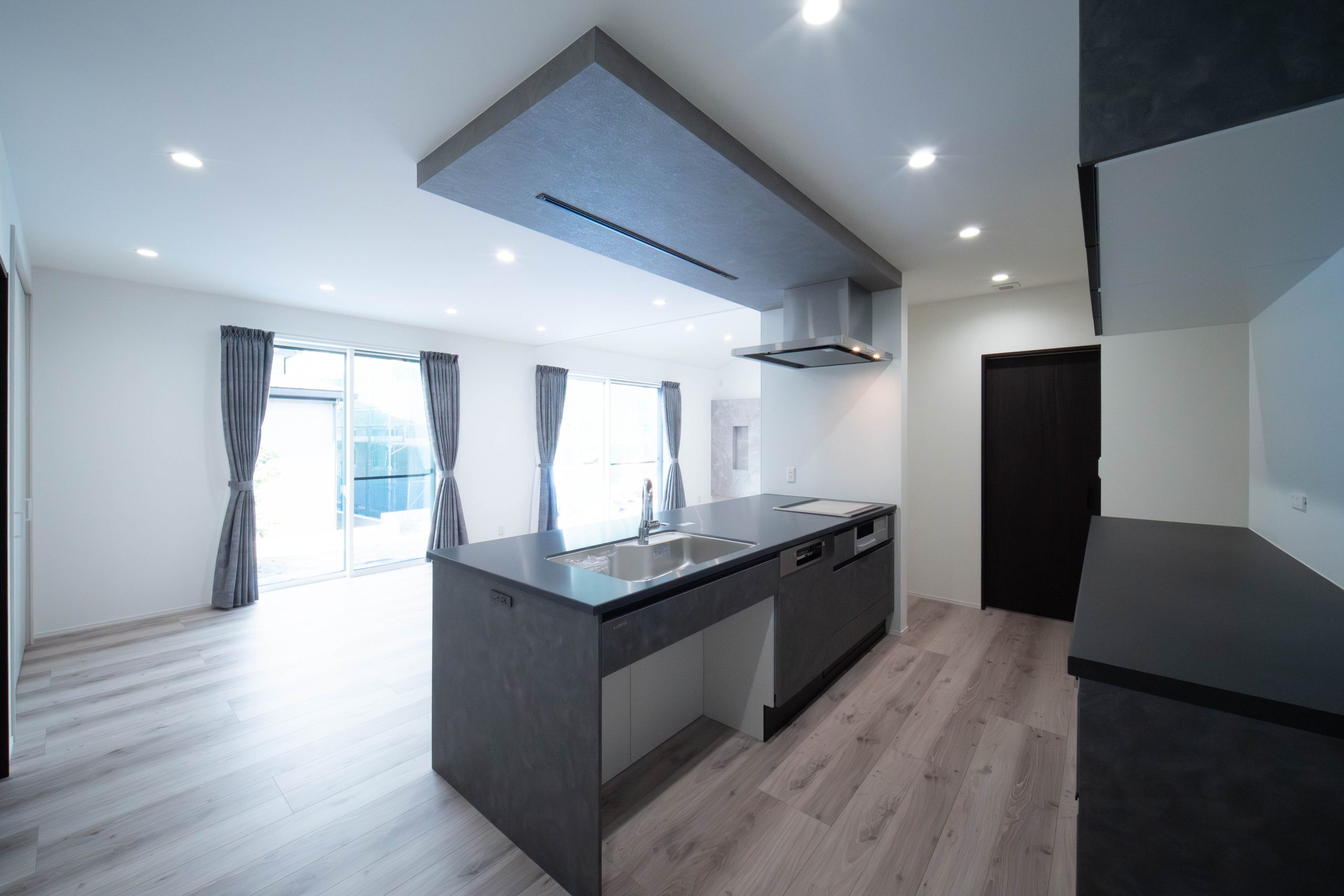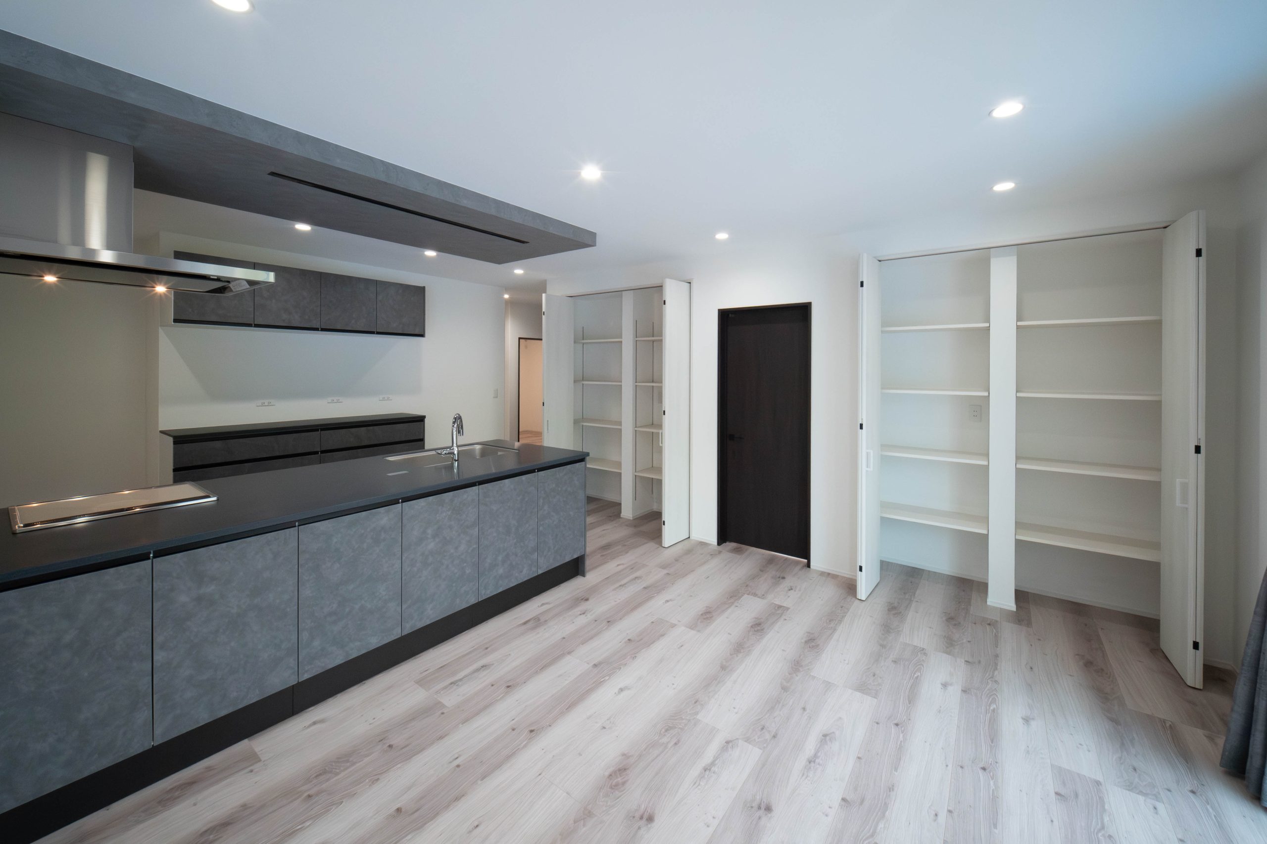 グレーを基調としたキッチン、シンク下の空間に自由度が広がります。