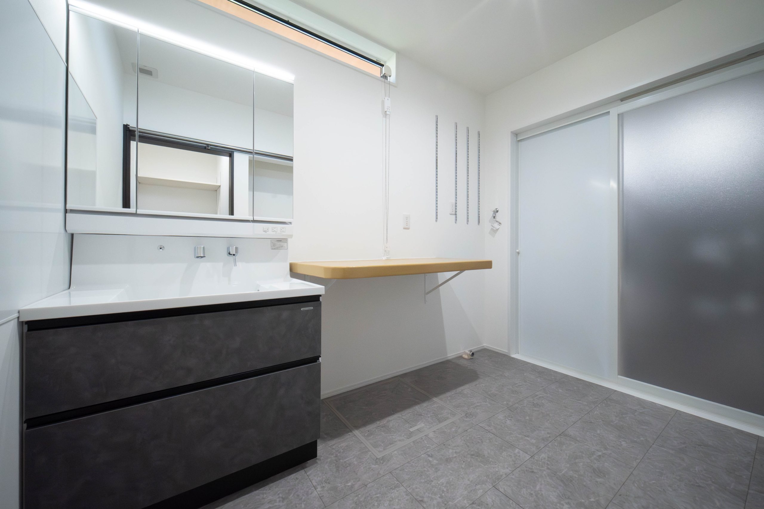 洗面・脱衣室も広々としています。日常の動線が重ならないことはストレス減に繋がりますね。