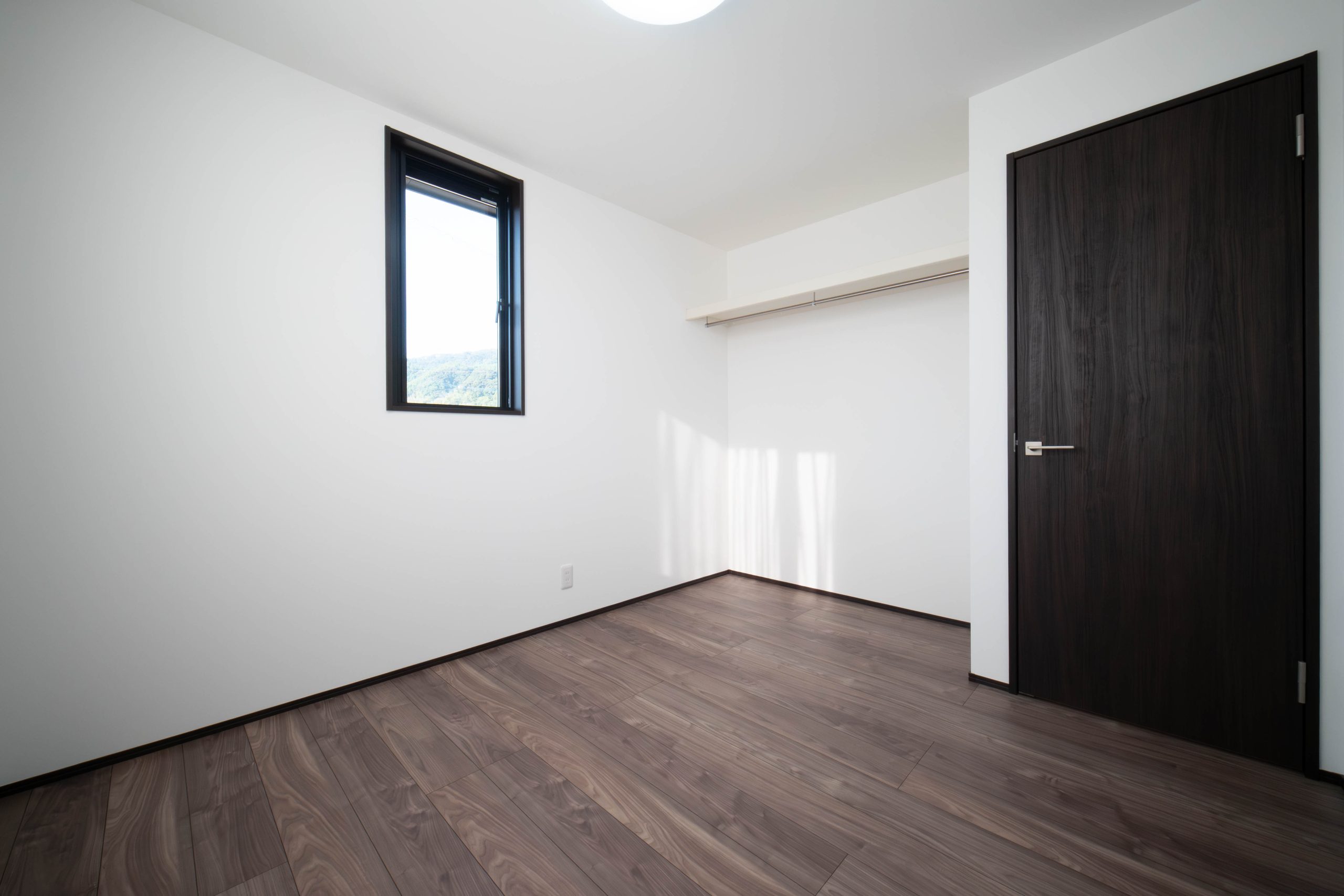 落ち着いた色合いの洋室は子供部屋に。仕舞いっぱなし投げ込みっぱなしは恥ずかしい・・・建具なしのクロゼットで魅せる収納を意識させ、お片付けの習慣づけに。