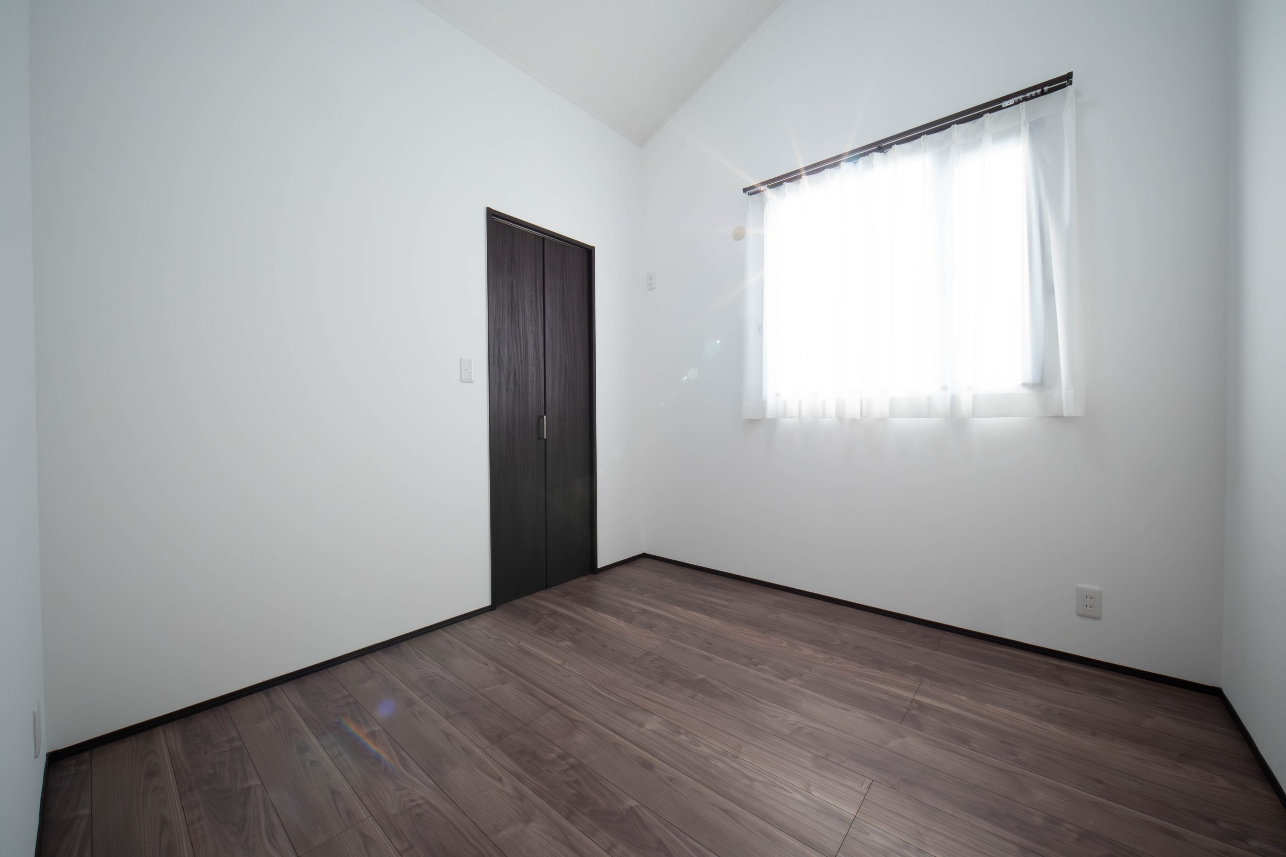 窓が片面のみで閉塞感が心配された洋室2は、屋根型を活かして天井を吹き抜けに。部屋奥には、お洒落な女の子にうれしい2畳の専用ウォークインクロゼットも用意。