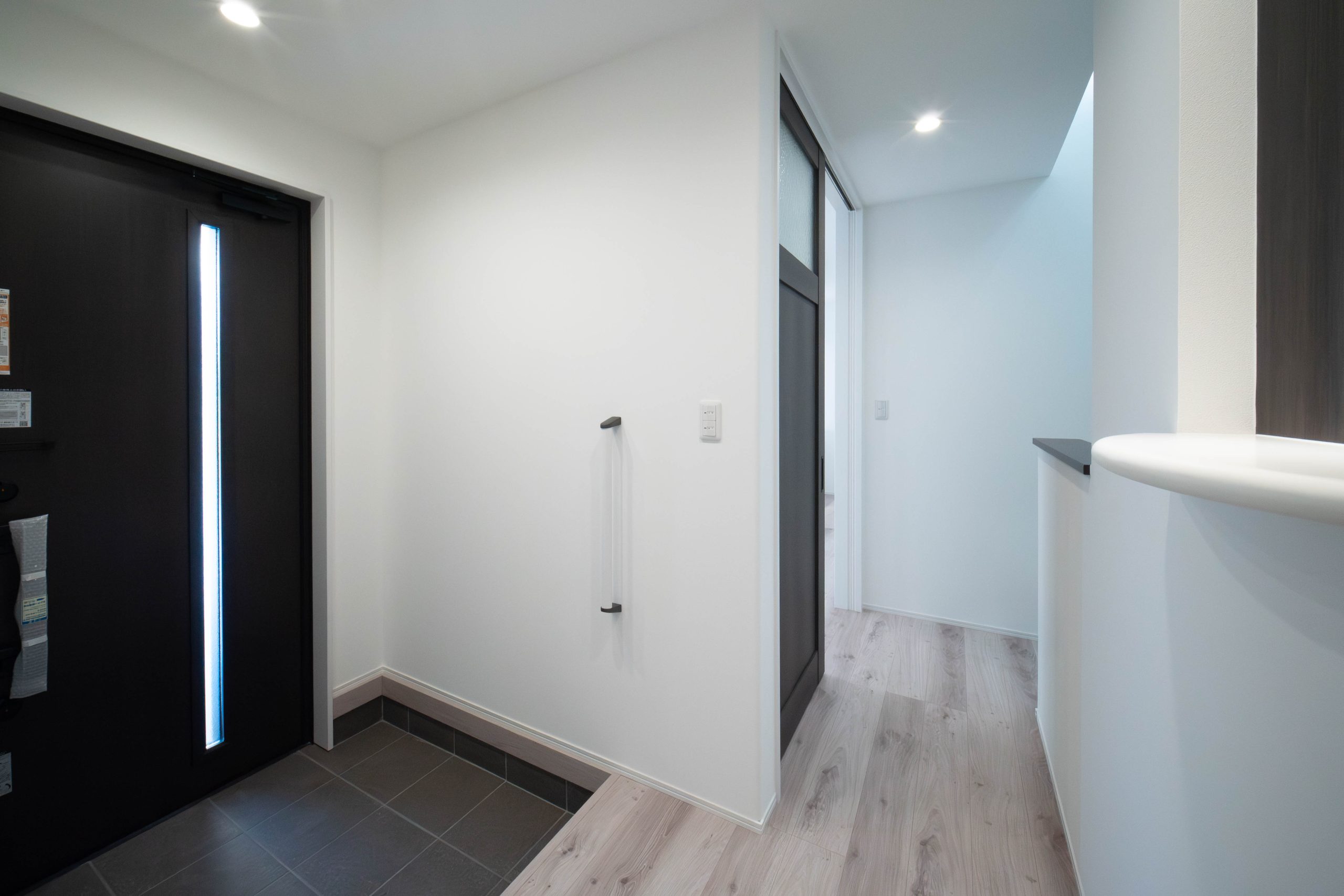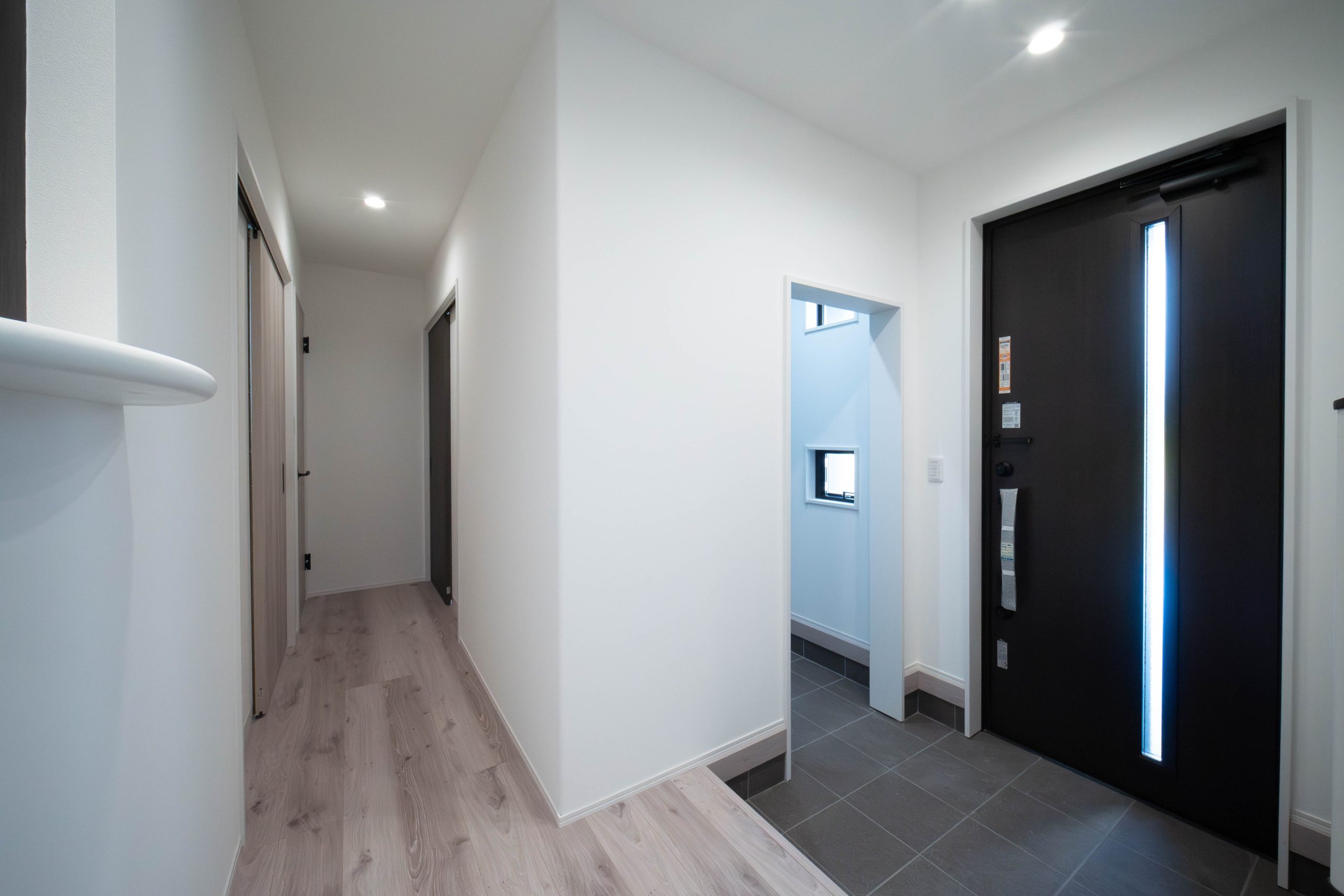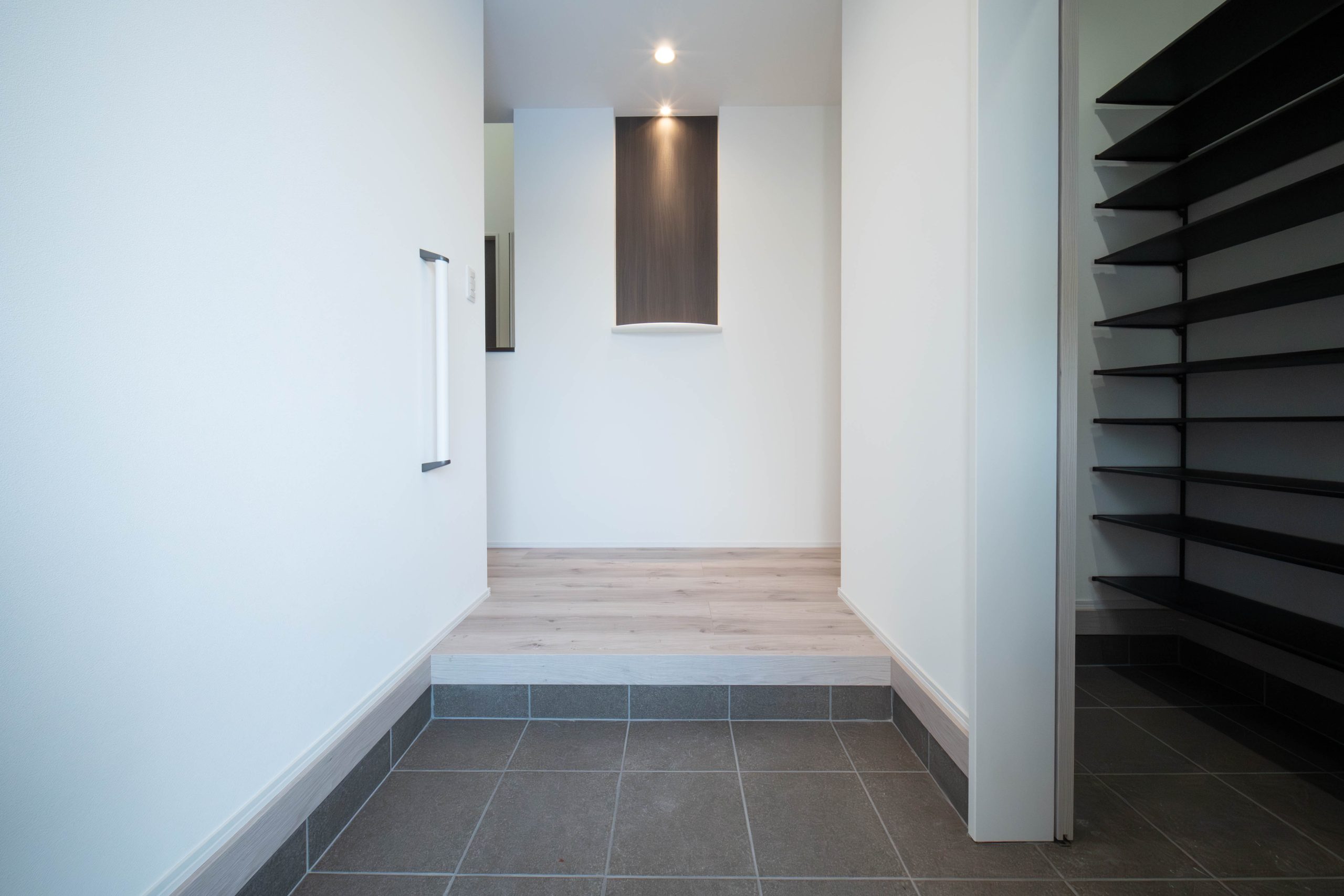 シューズクロークを供えた玄関。アクセントとしてホール正面に設けたニッチがお出迎え。