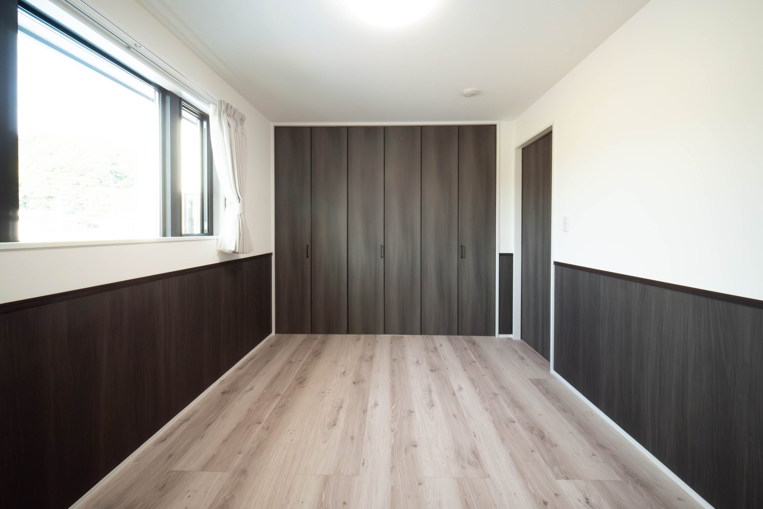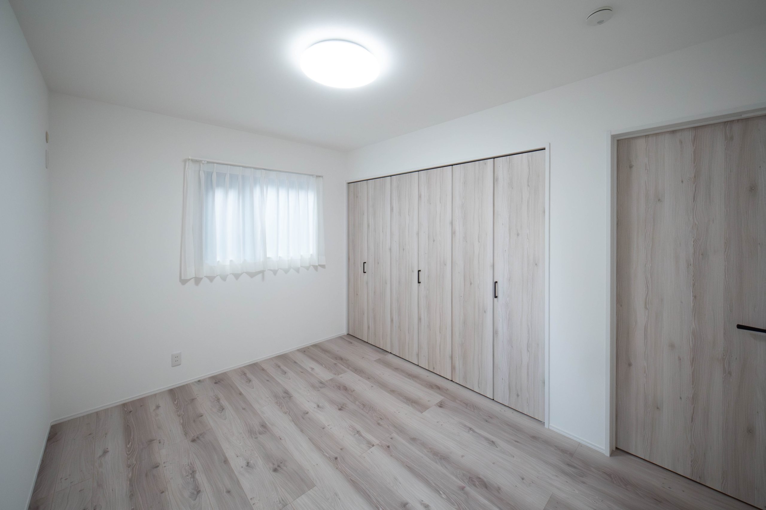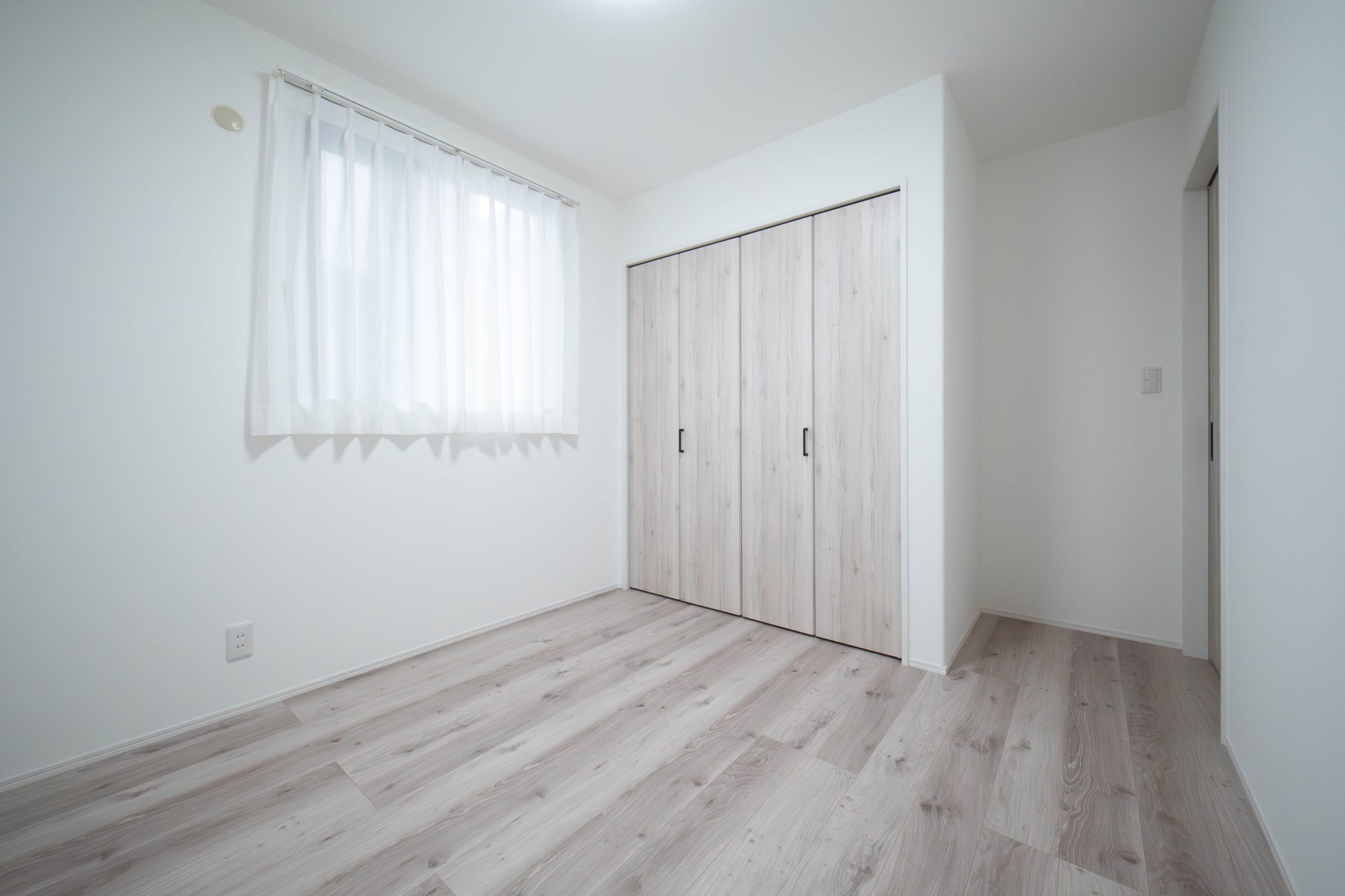 明るく清潔感のある色合いの洋室。クローゼットも十分な容量を確保しています。
