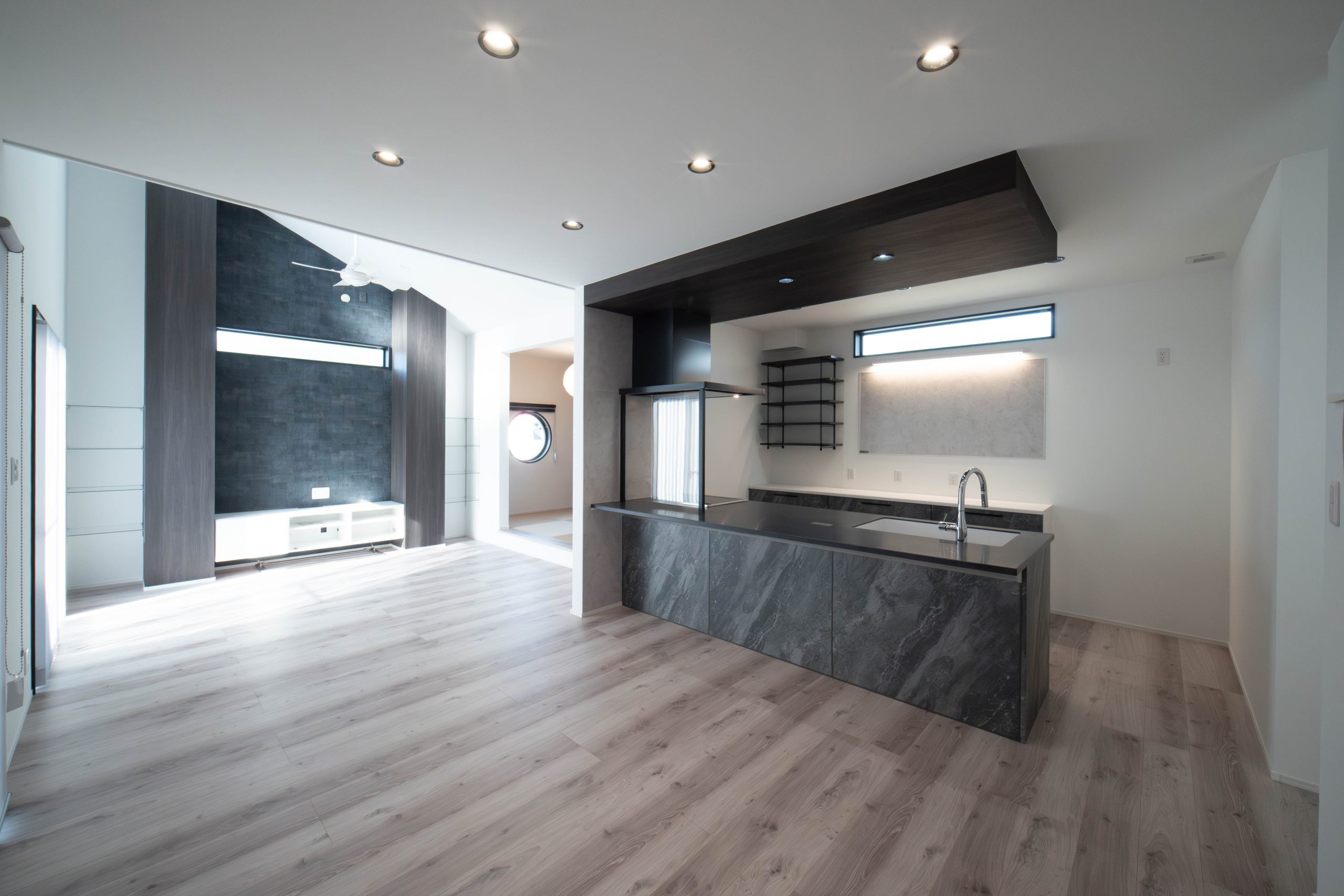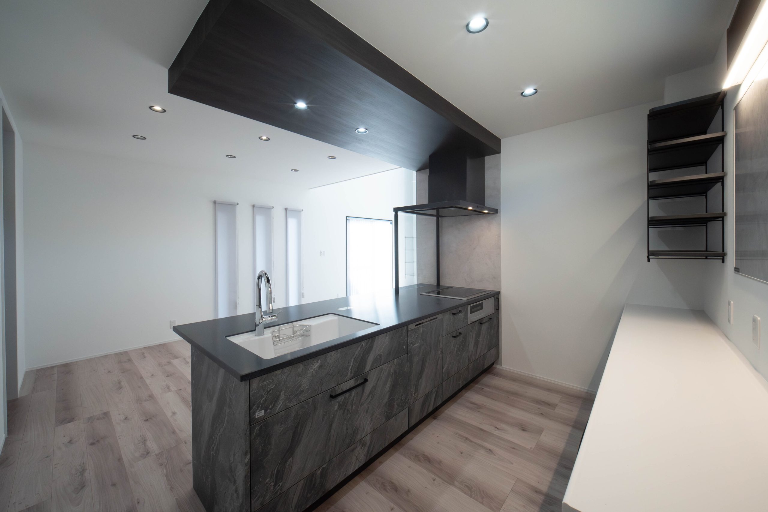 奥行きの広いキッチン天板を活かして、カウンターテーブルとしても良し。お気に入りのダイニングテーブルとチェアを揃えるも良し。使い方、家具の置き方いろんな使い勝手・好みにも対応。
